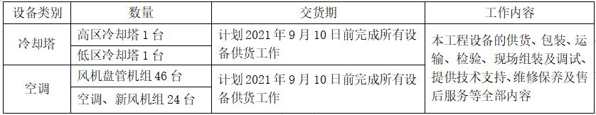 2.2 交货期:计划2021年9月10日前完成所有设备供货工作。