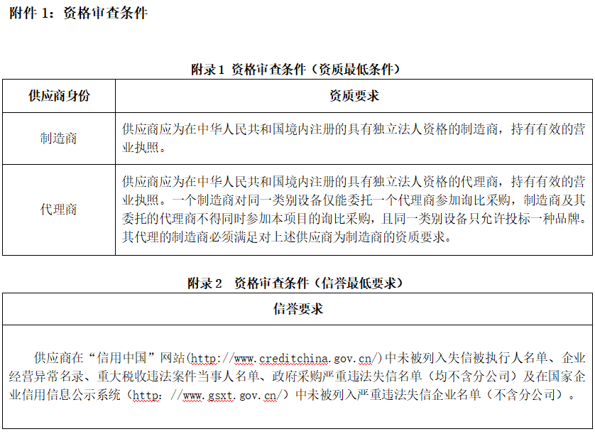 (2)信誉要求:满足附录2 资格审查条件(信誉最低要求)。