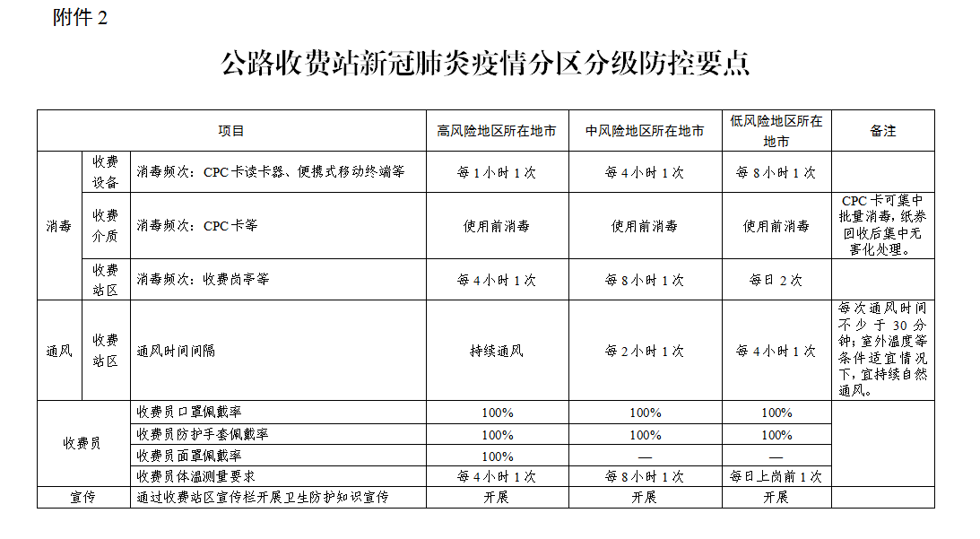2.公路收费站新冠肺炎疫情分区分级防控要点