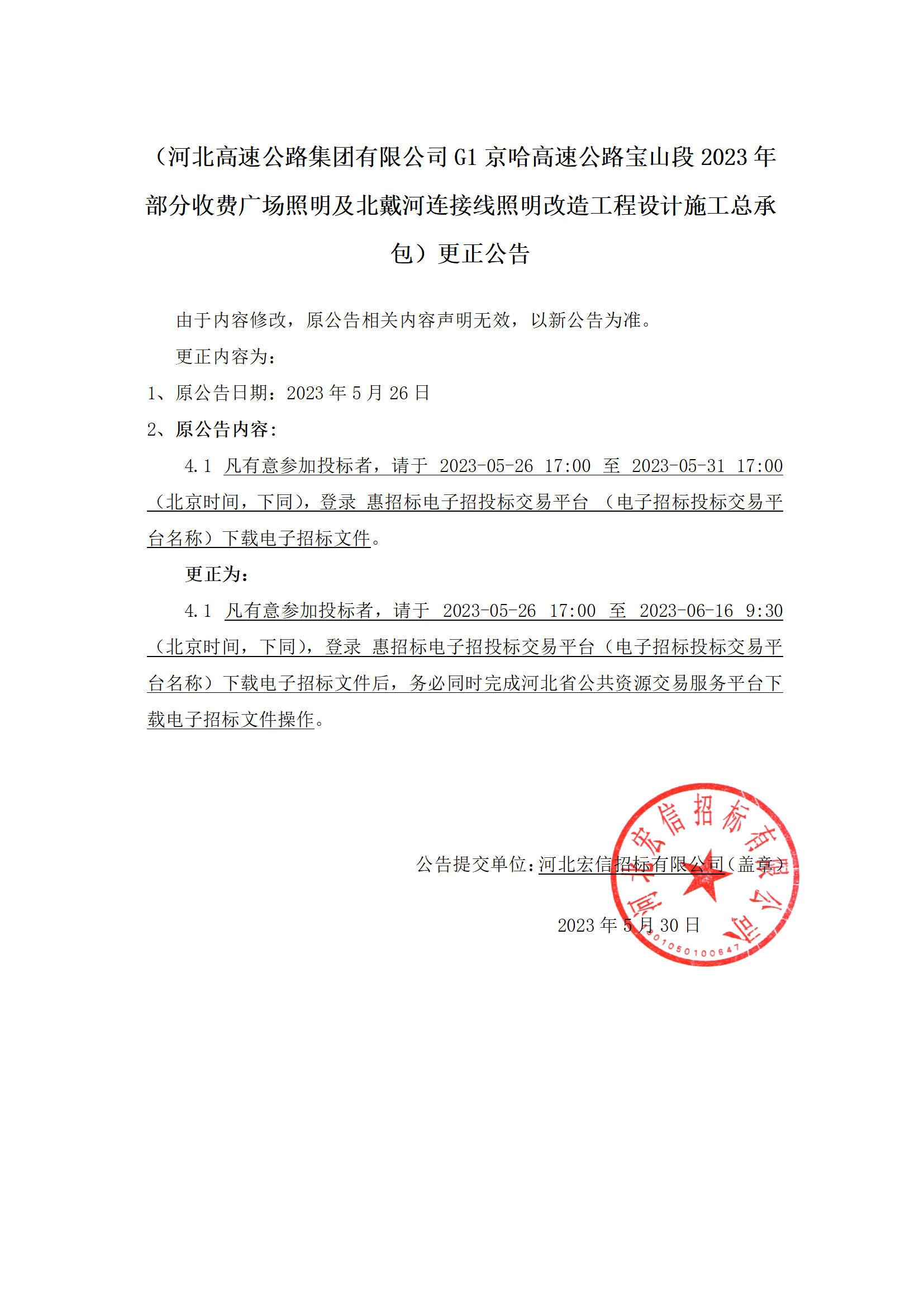 (开云集团G1京哈高速公路宝山段2023年部分收费广场照明及北戴河连接线照明改造工程设计施工总承包)更正公告.jpg