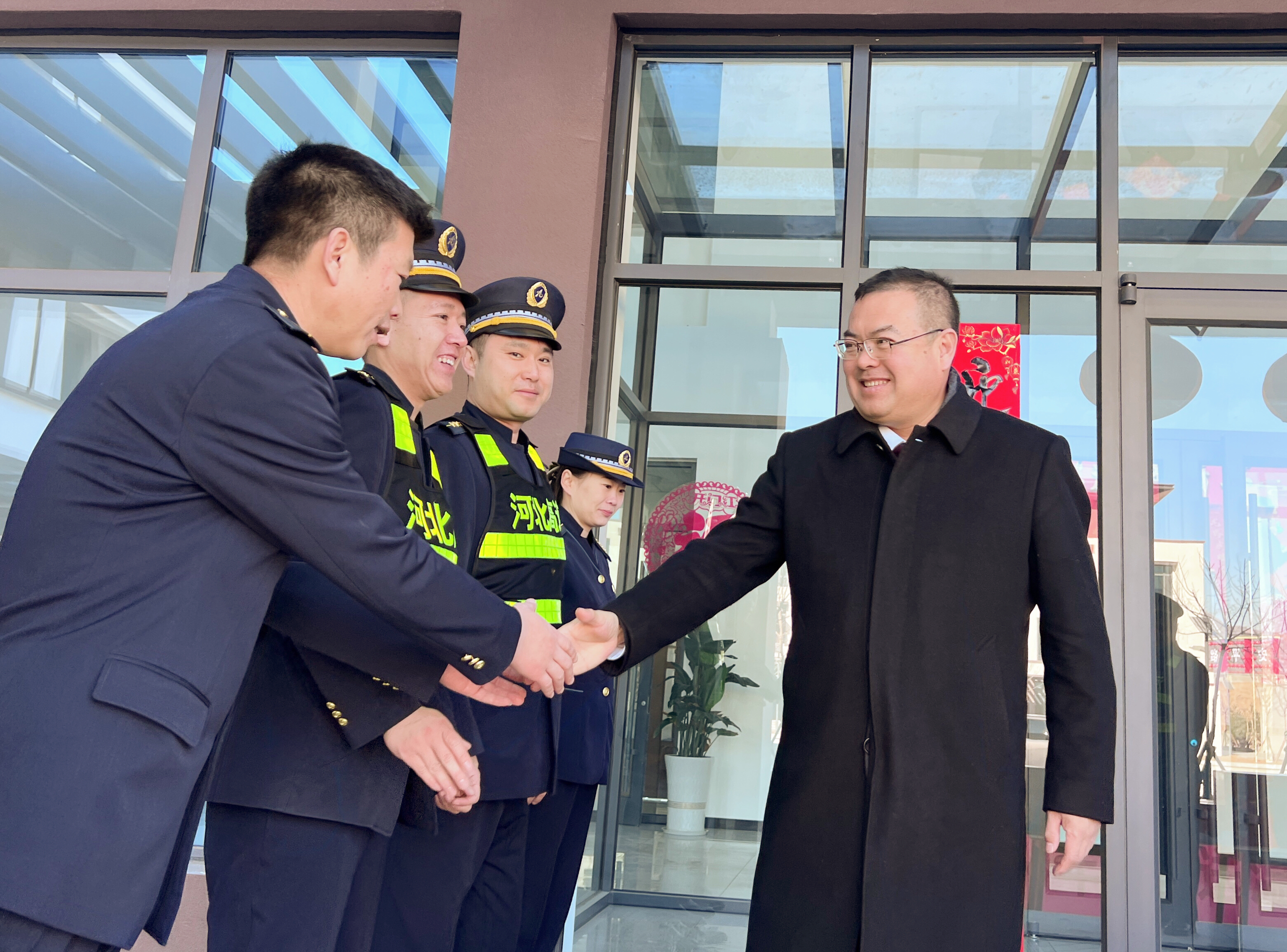 “大家辛苦了,给大家拜年了!”夏德胜一行先后来到丰宁站区各单位、承德南收费站,了解了各单位节日期间值班值守、道路通行和安全保障等情况,看望慰问了节日期间坚守在一线的收费站、隧道管理站、养护班组、应急大队广大干部职工,并与大家握手致意、亲切交谈,对他们立足岗位、坚守一线、舍小家顾大家的无私奉献表示崇高敬意和衷心感谢,同时通过大家向承德分公司各个岗位上的干部职工和家属致以亲切的问候和新春的美好祝福,祝愿他们新春快乐、工作顺利、身体健康、阖家幸福。