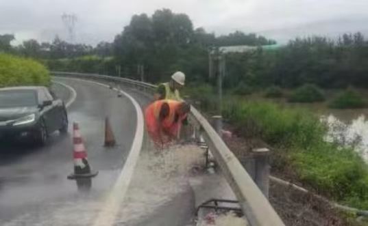 由于降雨量过大、水流太急,导致京秦高速秦皇岛路段多处排水沟、泄水孔堵塞,路面坑槽大量增加,部分路段出现滑塌,其中秦皇岛北收费站下道口和上道口北京方向匝道最为严重,排水沟等排水设施已排水饱和,雨水涌入行车路面,路面积水最深处约30厘米。秦皇岛养护队立即组织紧急抢险,一是派人员对匝道积水处进行抢险排水,二是对路面新出坑槽、排水淤堵、边坡滑塌等进行应急处置。秦皇岛分中心主任、副主任赴现场督导指挥,并在秦皇岛片区协调排水设备,截至下午6点,路面积水、坑槽、滑塌等基本处理完毕,及时有效的完成了此次防汛应急抢险任务。