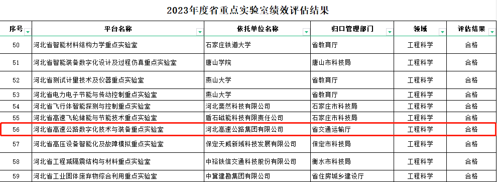 8月30日,河北省科学技术厅公布了2023年度省重点实验室、技术创新中心绩效评估与验收工作结果,河北省高速公路数字化技术与装备重点实验室顺利通过省科技厅专家组评估,标志着实验室正式迈入新的发展征程。