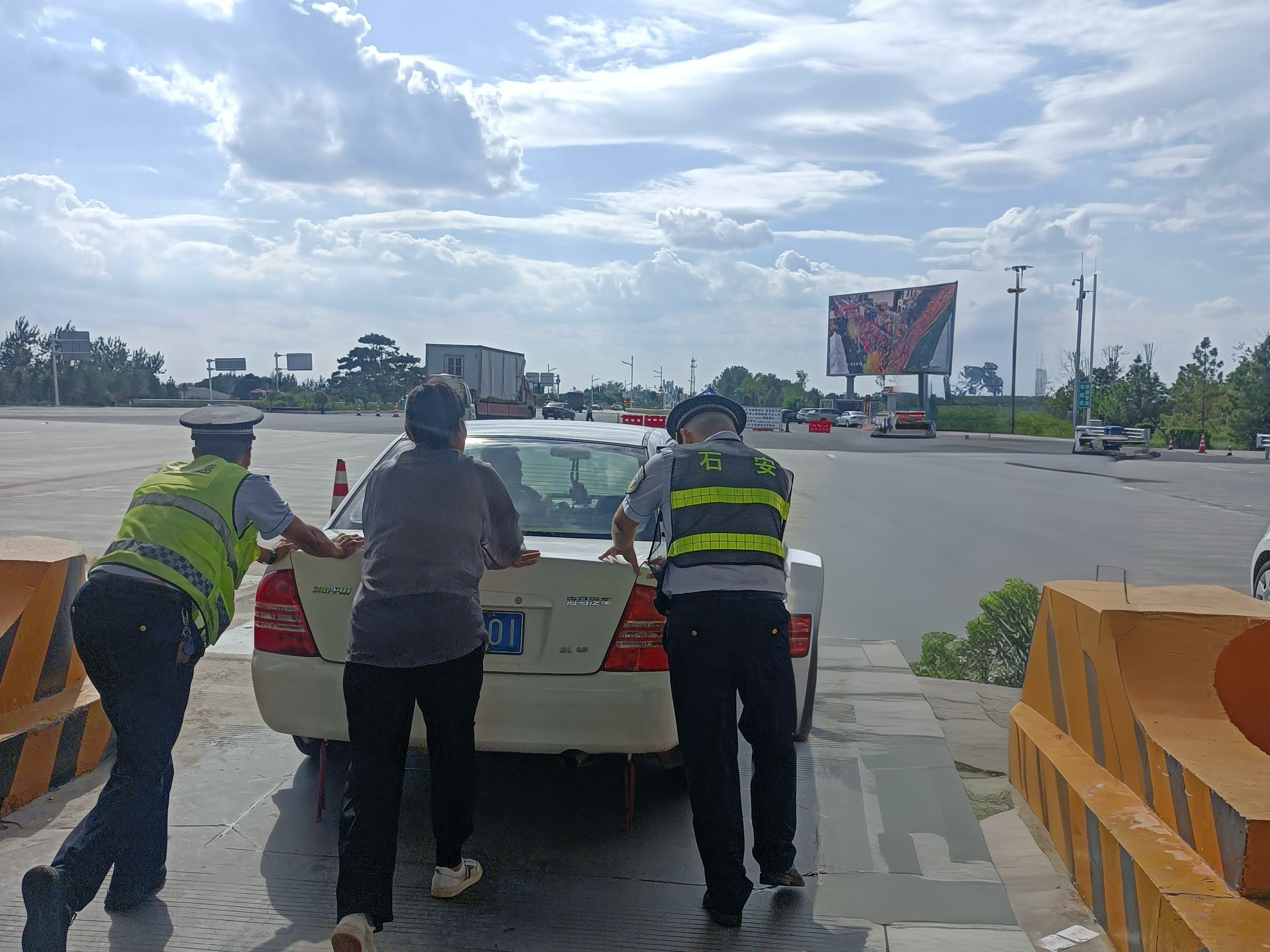 9月6日,石家庄东收费站迎来返校车流高峰,广场上车流如织,一辆小车突然熄火停在了车道内,正在车道巡查的当班班长康雨看到这一情况后,刚忙上前询问情况。司机着急地说道:“这车子不知道咋回事,突然就发动不了,孩子第一天上学,马上要迟到了!”