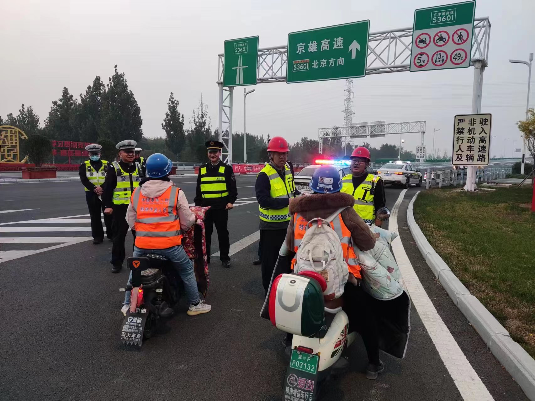 为了进一步加强京雄高速公路路域安全管理,有效预防和减少因行人及非机动车非法进入高速公路而引发的交通事故,10月9日,京雄高速指挥调度中心联合高速交警容城大队、执法局京雄大队,共同开展专项劝返行动,通过加强巡逻、宣传教育等措施,提高公众对高速公路安全的认识,确保道路交通的安全畅通。