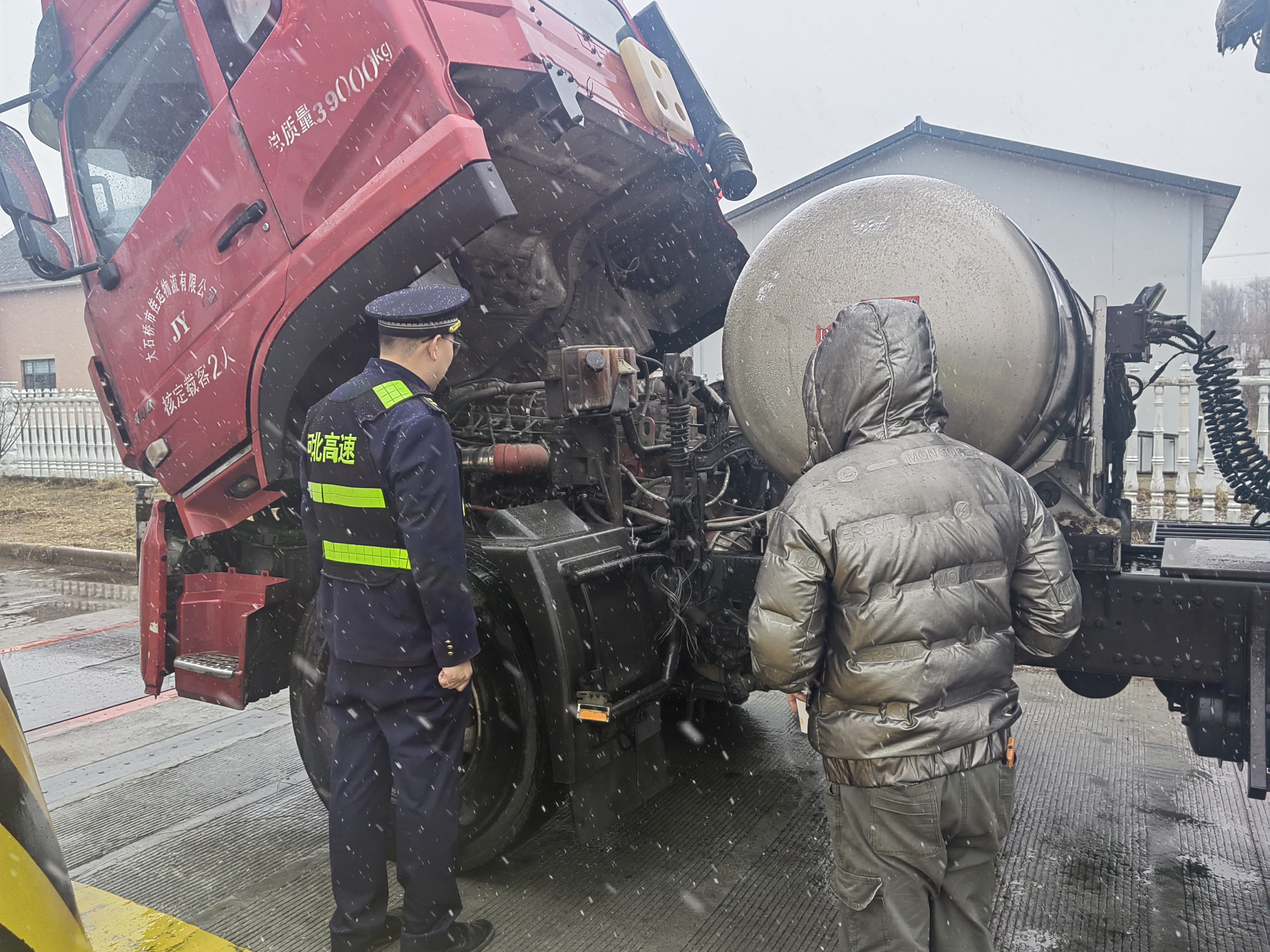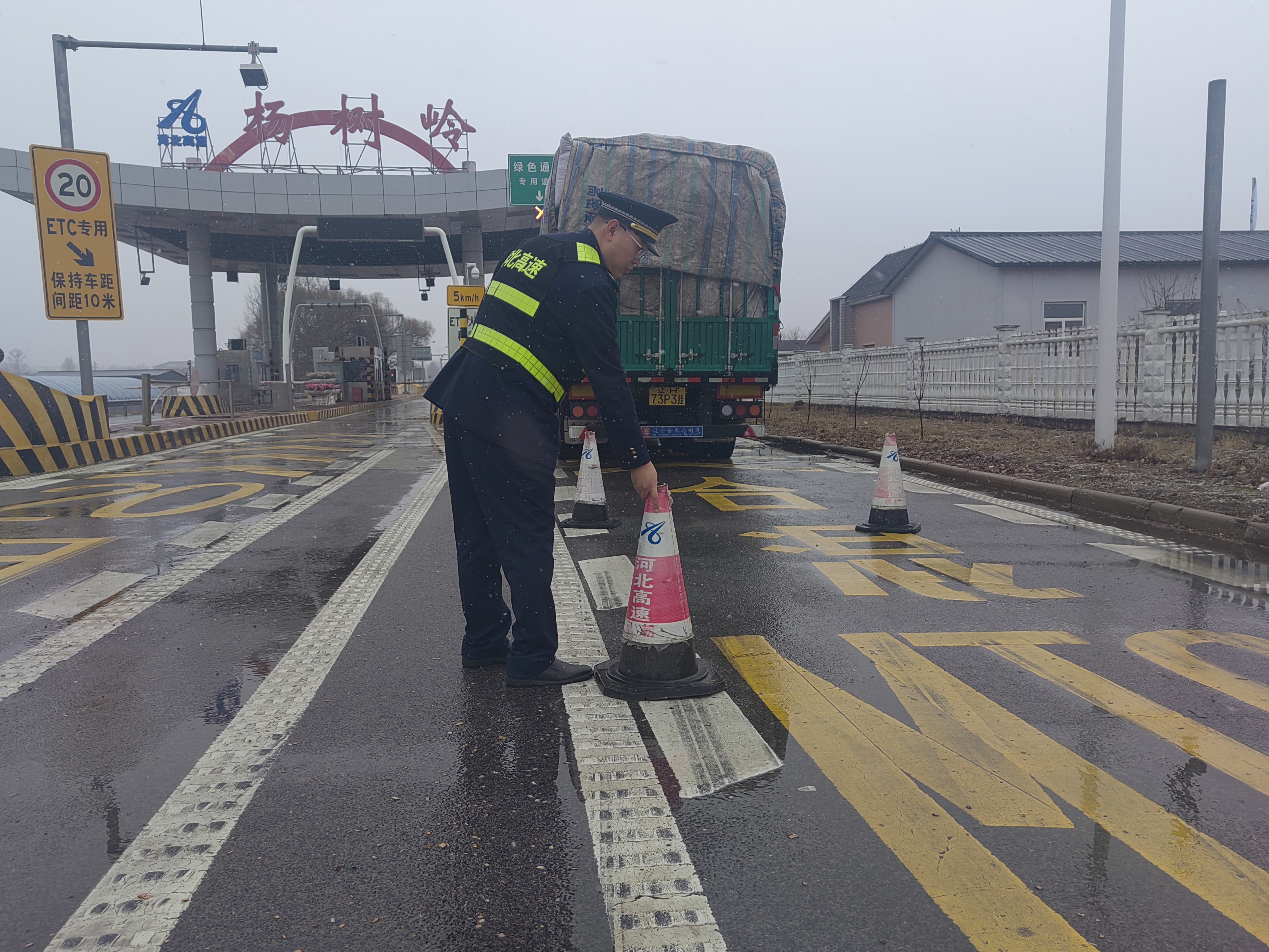 2024年11月25日,杨树岭收费站迎来了入冬的第一场雪。飞扬的小雪带来了寒冷,但在收费站却发生了暖心的一幕。