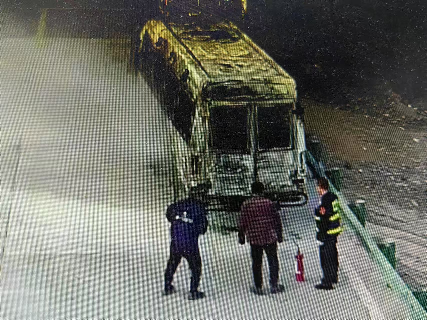 12月10日上午8:30,一辆中型平板货车载着一辆后尾部冒着火光和熊熊黑烟的中巴客车驶入新河南站出口4车道,司机急得满头大汗,说话语无伦次。当班收费员见此情景,立即跑出收费亭,一边打开车道指引车辆停靠到收费广场安全地带,一边通知当班班长处理突发情况。班长组织备岗人员带着灭火器迅速赶去救援。8点40分,在大家轮番灭火下,火势终被扑灭。经了解,该车拉的客车属于事故车,不知因何原因,在高速行驶过程中,客车后轮胎突然冒烟,司机发现后,紧急从新河南站下道,寻求收费站帮助。临别之际,司机对新河南站收费人员一再表示感谢。