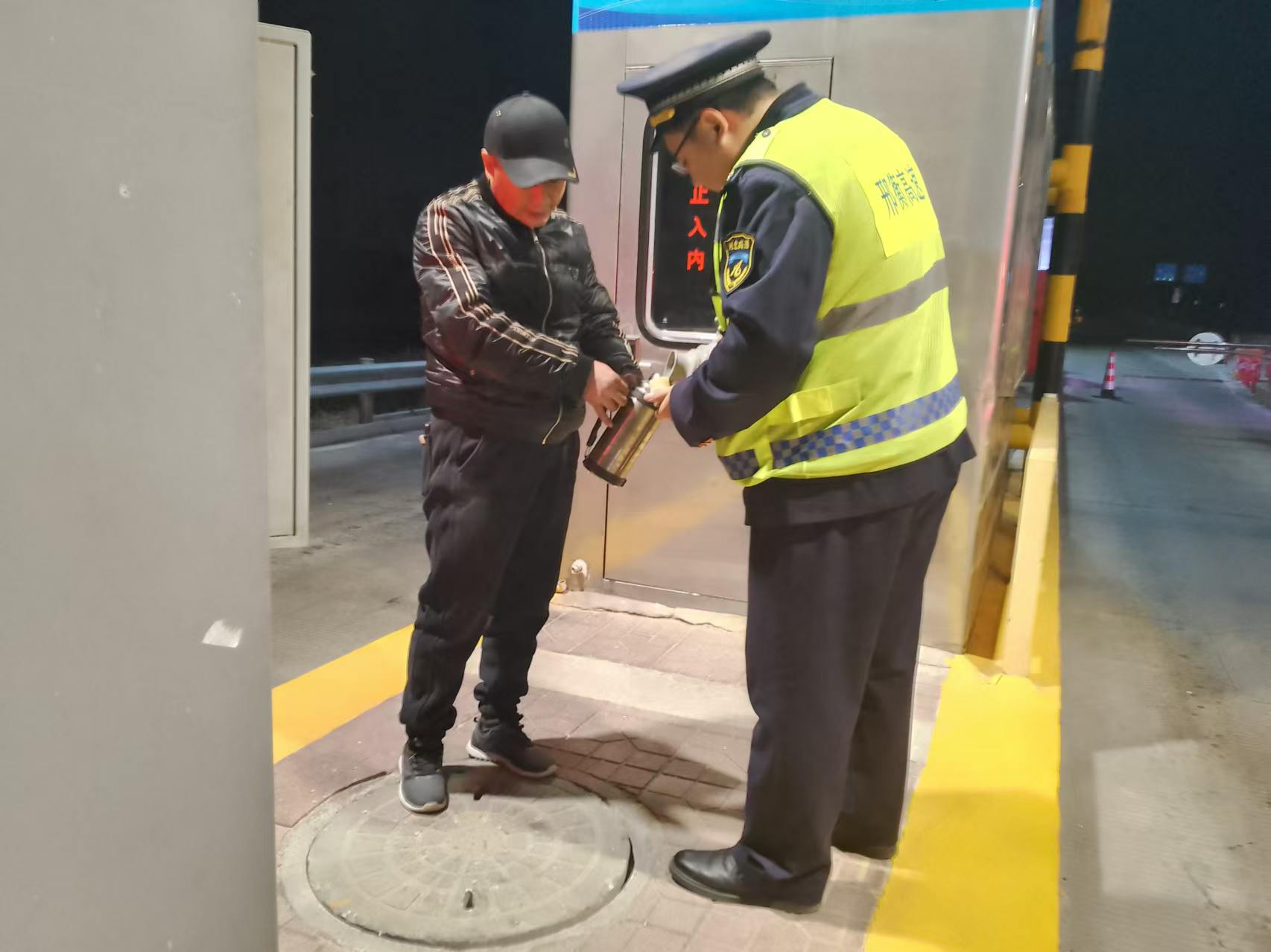 12月28日19时左右,一辆一型货车停在发卡车道前,当班发卡员立即询问司机是否需要帮助。司机表示口渴难耐,附近又没有商店,想要点热水,发卡员随即拿对讲机将情况汇报给班长。