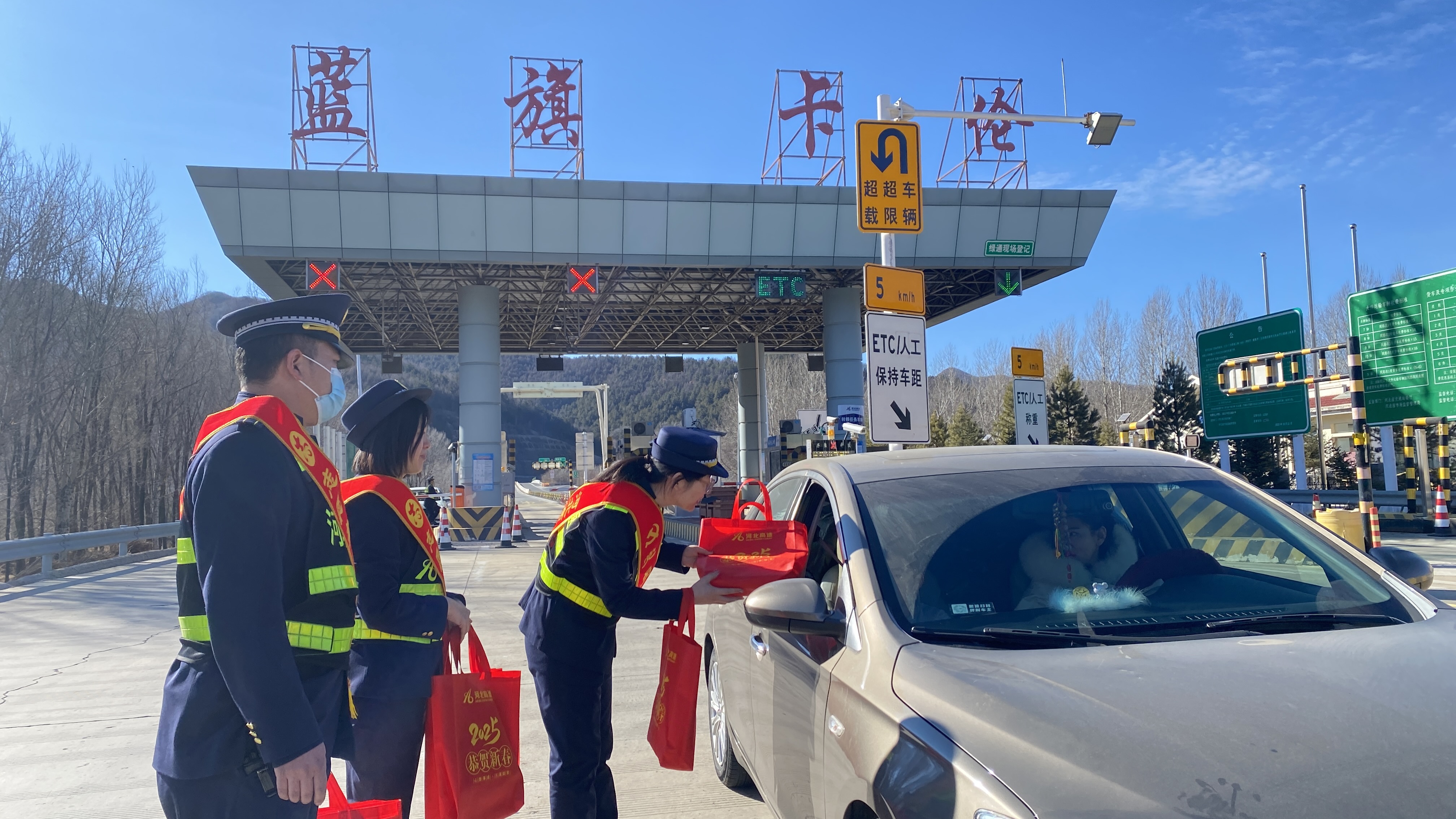 1月22日,农历小年,承德分公司蓝旗卡伦收费站口热闹非凡,一场 “新春送祝福 情满春运路” 主题活动在此热烈开展,为春运期间奔波在路上的司乘人员送去了浓浓的温暖与真挚的祝福。