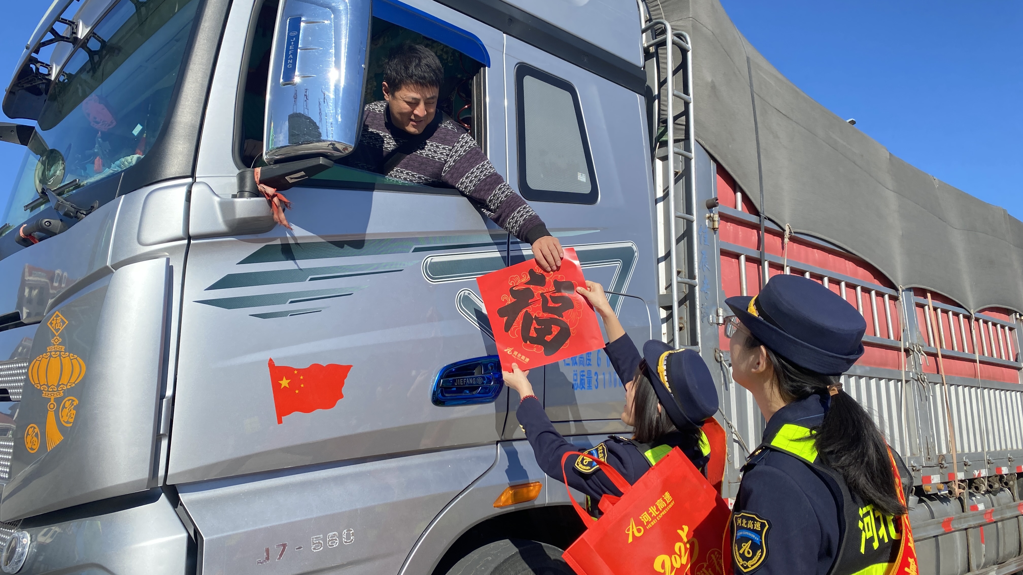 当工作人员将福袋递到司乘手中时,收获的是一张张惊喜而温暖的笑脸。一位货车司机难掩激动,笑着说道:“真没想到在高速路上还能收到这么贴心的礼物,这“福袋”看着就让人心里欢喜,一下子就有了过年的感觉,太感谢你们了!”
