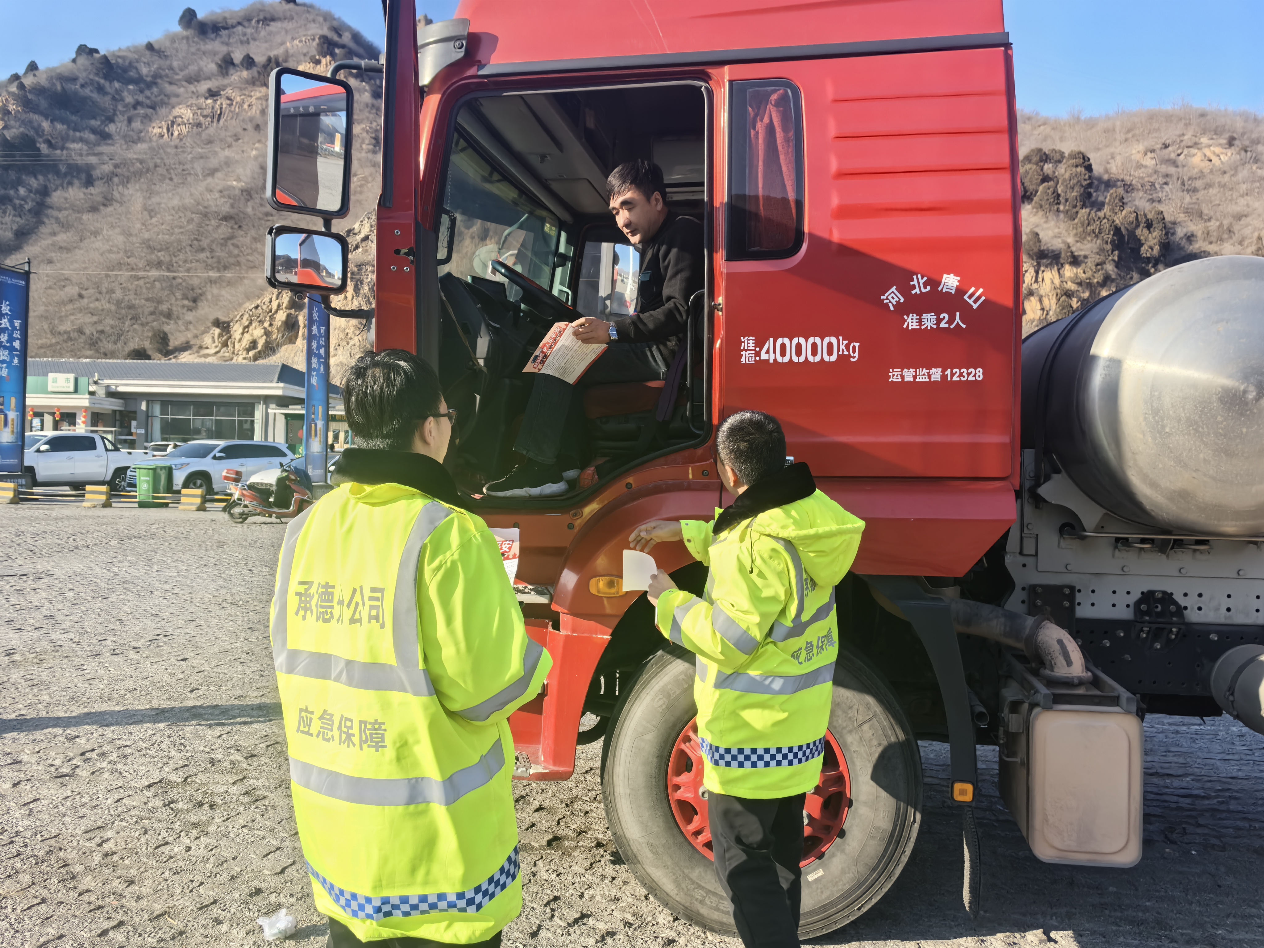 队员们到辖区内的收费站、服务区,向过往司乘送上新年祝福,并积极宣传交通法规及救援知识。队员们结合典型交通事故案例,以案说法,向司乘详细讲述疲劳驾驶、超载超速、行车不系安全带等违法行为带来的危害,引导大家自觉遵守交通法规,摒弃交通陋习,时刻将交通安全铭记于心。针对辖区货车流量大的特点,特别向货车司机详细讲解了如何预防货车自燃、侧翻的防范要点,科普安全自救、快速求救方法。同时,张贴“一键救援”贴,向过往询问司机耐心解答一键救援操作说明,答疑解惑,得到过往司机的一致好评。