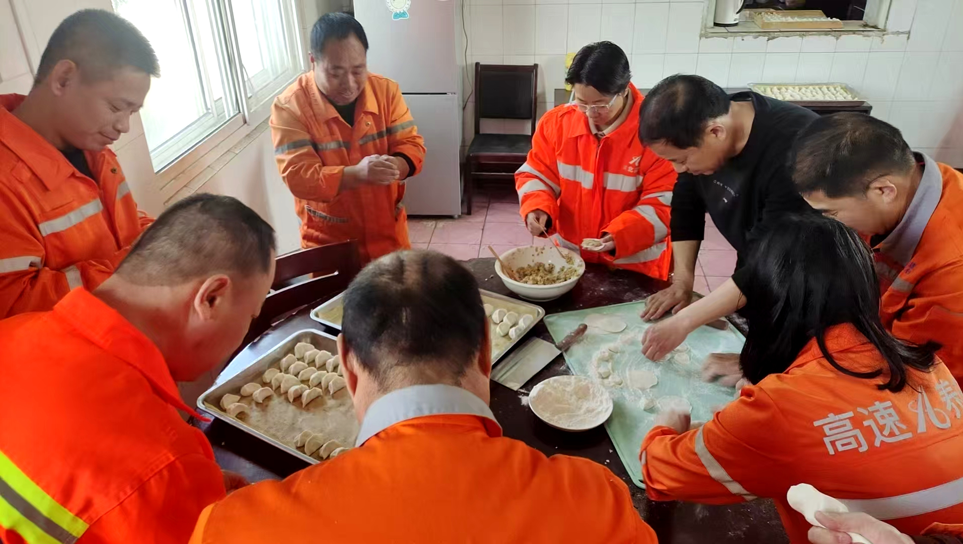 而南宫西养护队、石家庄养护队活动现场气氛同样热烈。队员们纷纷挽起袖子,跃跃欲试。大家各显神通,既有传统的圆滚滚水饺,也有创意十足的 “个性饺子”,大家一边分享着工作中的趣事和生活中的点滴,一边熟练地包着饺子,欢声笑语回荡在整个场地。