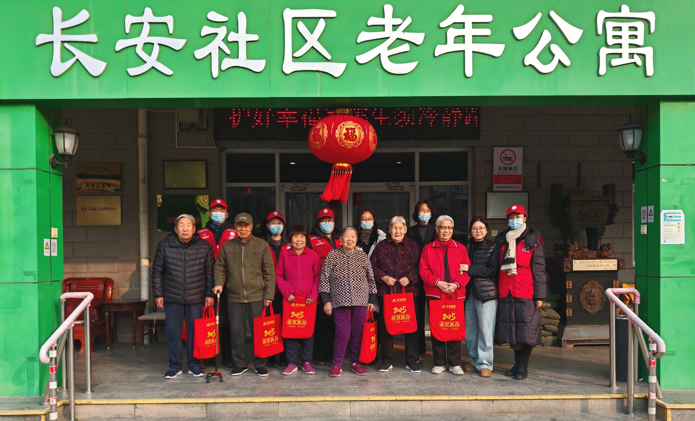 在石家庄市长安区建明小区,志愿服务队在社区工作人员的带领下,将内含春联、福字、窗花、新年装饰挂件等“新春福袋”送给刘大爷和李奶奶,和老人聊家常,关心老人们的身体情况。在石家庄市长安社区老年公寓,老年公寓的李主任向大家介绍了老年公寓的具体情况,志愿服务队悉心叮嘱老人们要防寒保暖、注意身体,并送去春节最诚挚的祝福。老人们为志愿者们的热情所感染,啧啧称赞响彻耳畔。