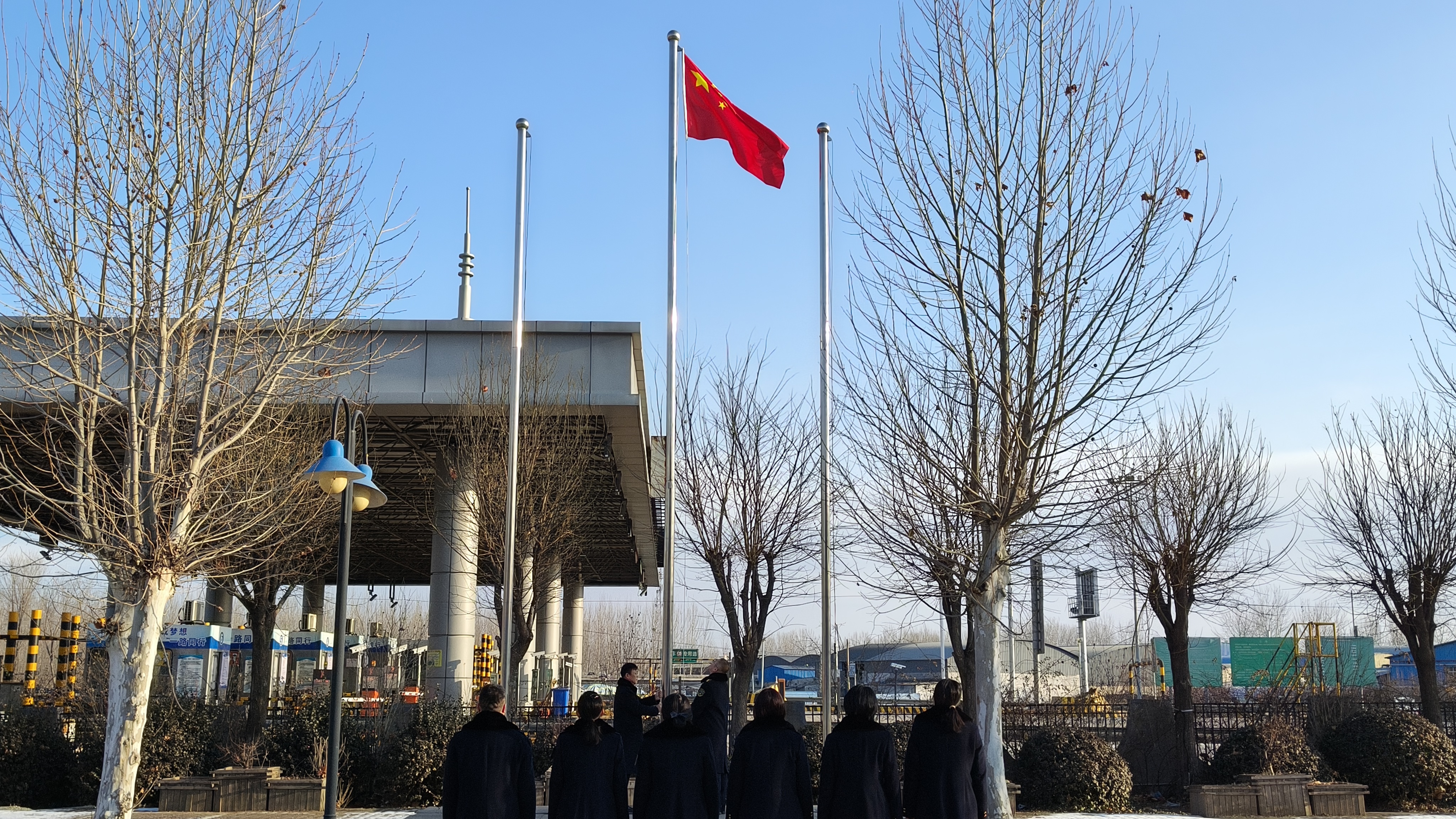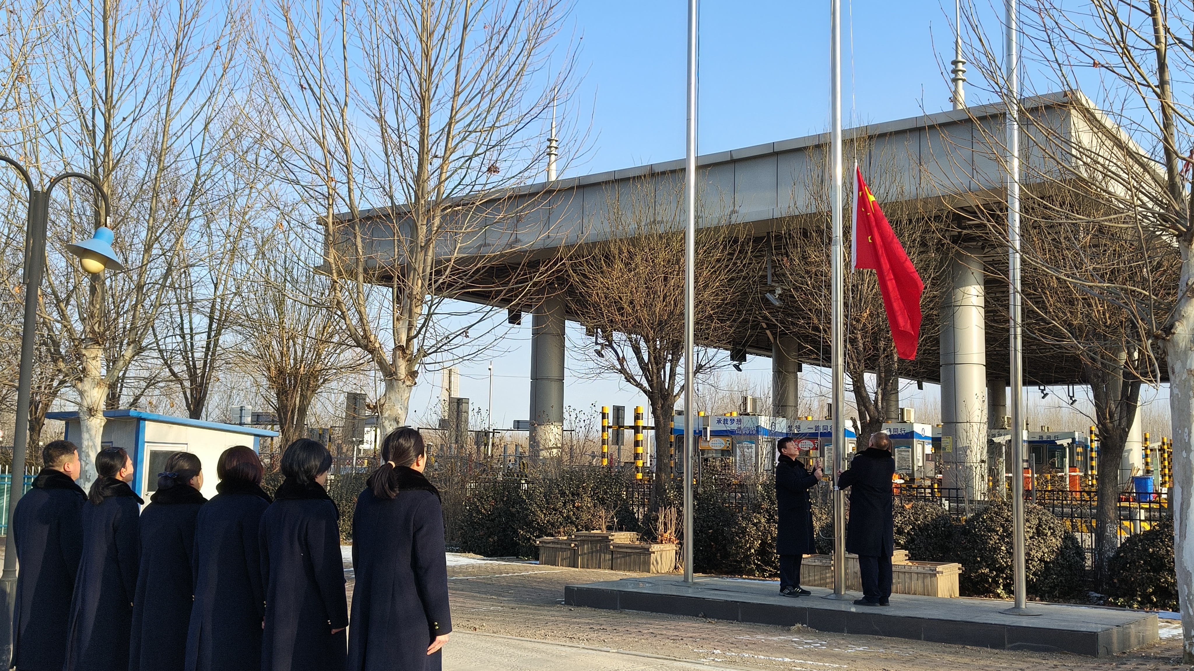 往昔岁月织锦绣,今朝新春攀高峰。1月29日上午,东新庄收费站精心筹备了一场既庄重又热烈的升旗仪式,以此迎接蛇年新春的到来。