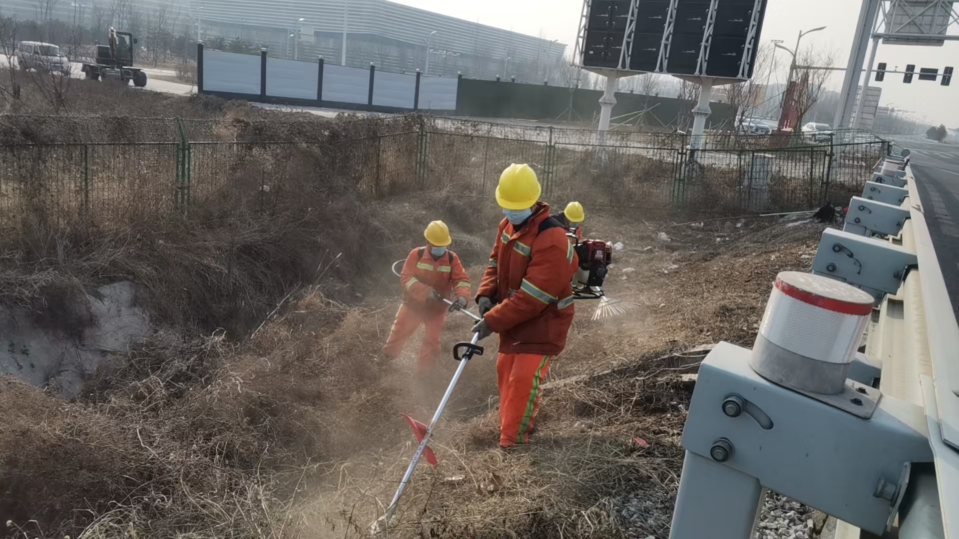3月10日,固安养护队的养护施工现场一派繁忙景象,养护机械设备来回作业,路域保洁、隔离栅封闭、边沟、边坡清理等多项养护工作有序推进。