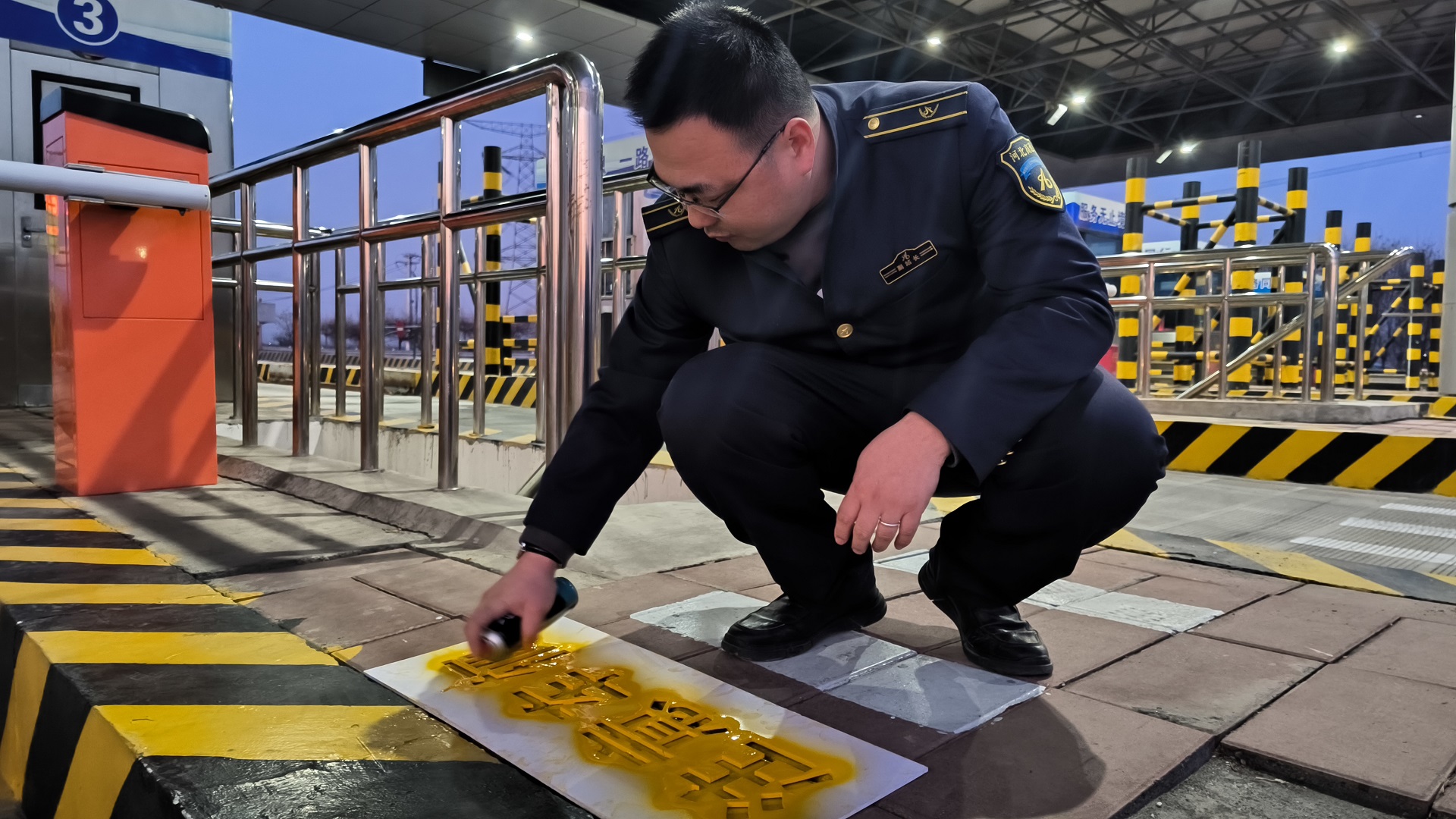 在职工日常需要横穿的车道地面上,玉田城西收费站喷涂了醒目的“注意车辆”警示标语。鲜艳的色彩搭配清晰的字体,十分引人注目,有效提高了职工在横穿车道时的警惕性。同时,在车道附近的显著位置摆放了安全提示牌,提示牌上写着“一站 二看 三通过”和“穿行车道 注意安全”,简洁明了的提示语为职工提供了明确的安全指引,时刻提醒职工横穿车道时要观察周围车辆的行驶情况,确保安全后再通过。