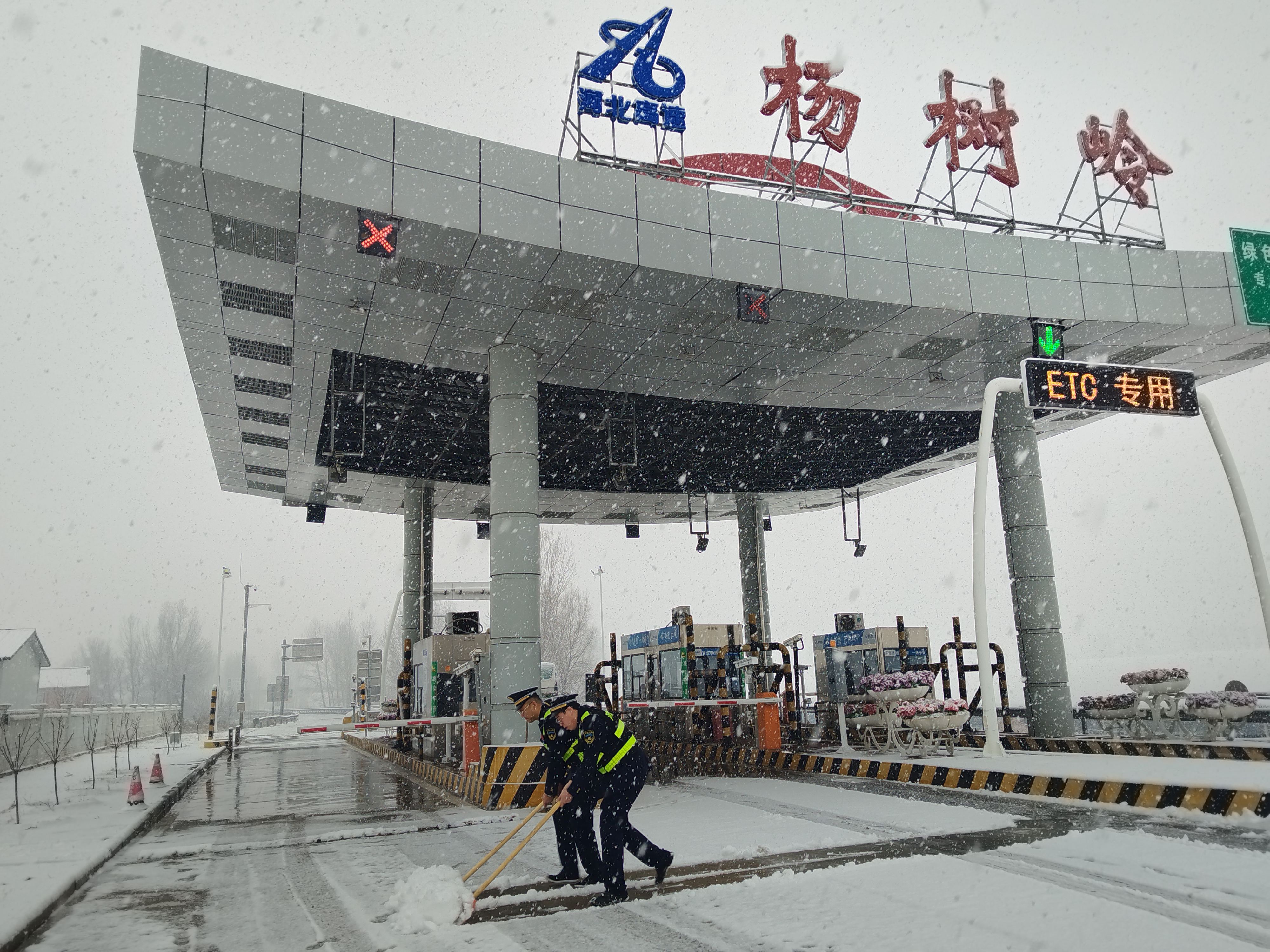 初春的北方,室外气温不足零度,雪花纷纷扬扬,没有丝毫停歇的迹象。杨树岭收费站的收费职工们秉承“随下随清,雪停即通”的保畅通理念,迅速投入到除雪保畅工作中。大雪吹进了嘴里,刮进了衣领里,也没有阻挡他们除雪保畅的步伐。大家齐心协力,奏响了一曲与风雪赛跑的劳动之歌。