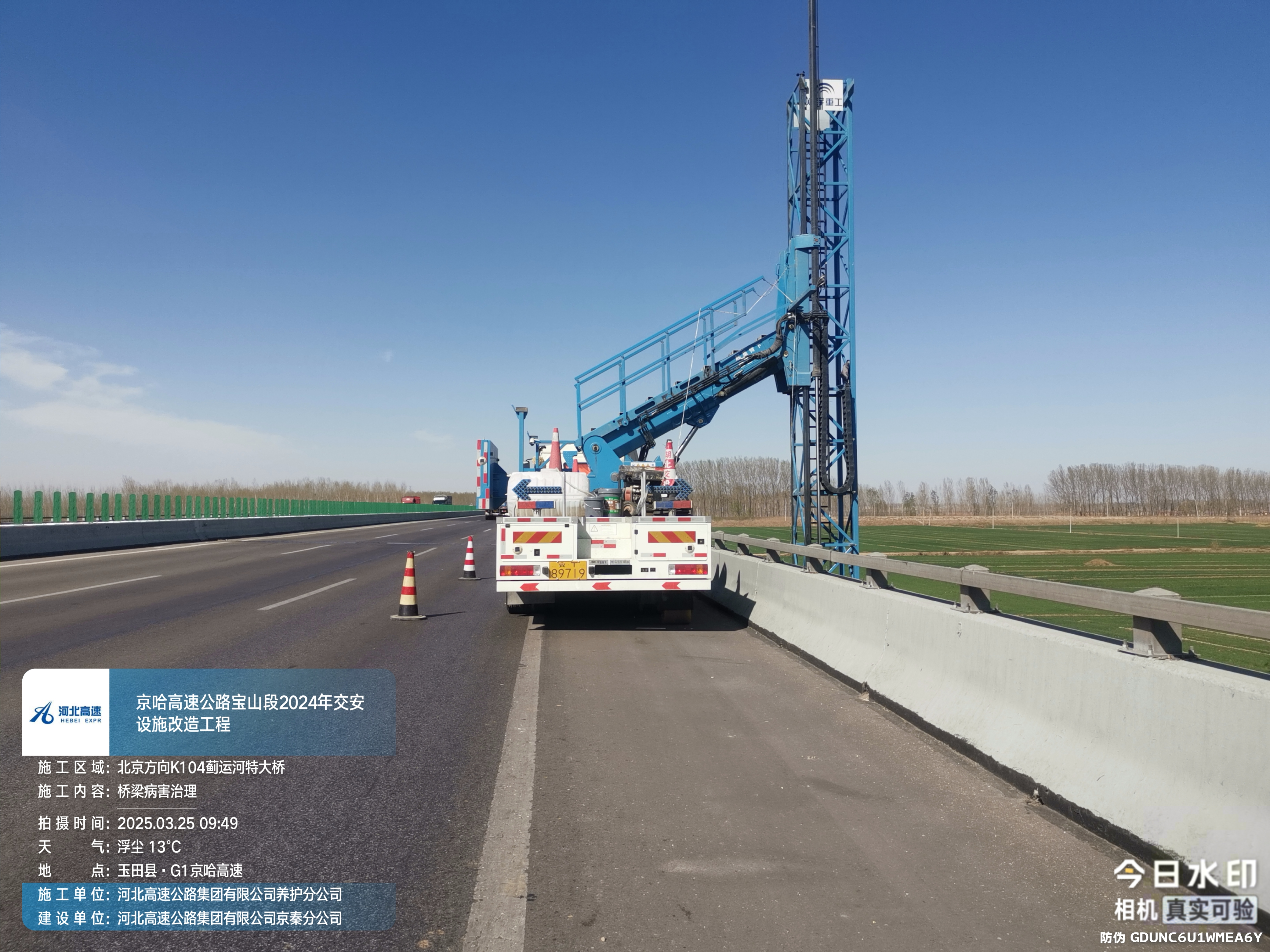秦皇岛分中心辖区内共负责3个路段分公司8个专项工程,主要施工内容包括路面病害修复、桥梁支座更换、声屏障改造完善以及交通安全设施更换等工程。目前,G1京哈高速公路宝山段2025年路面病害治理工程开展高聚物注胶、铣刨摊铺6处工作面、桥梁病害治理工程开展裂缝封闭、支座更换2处工作面、声屏障增设及更换工程开展2处工作面,S52承秦高速秦皇岛段上边坡防护、桥梁踏步维修开展三处工作面,G0121京秦高速公路秦皇岛铣刨摊铺以及2024年专项工程每天十余处工作面也在有条不紊的施工中。
