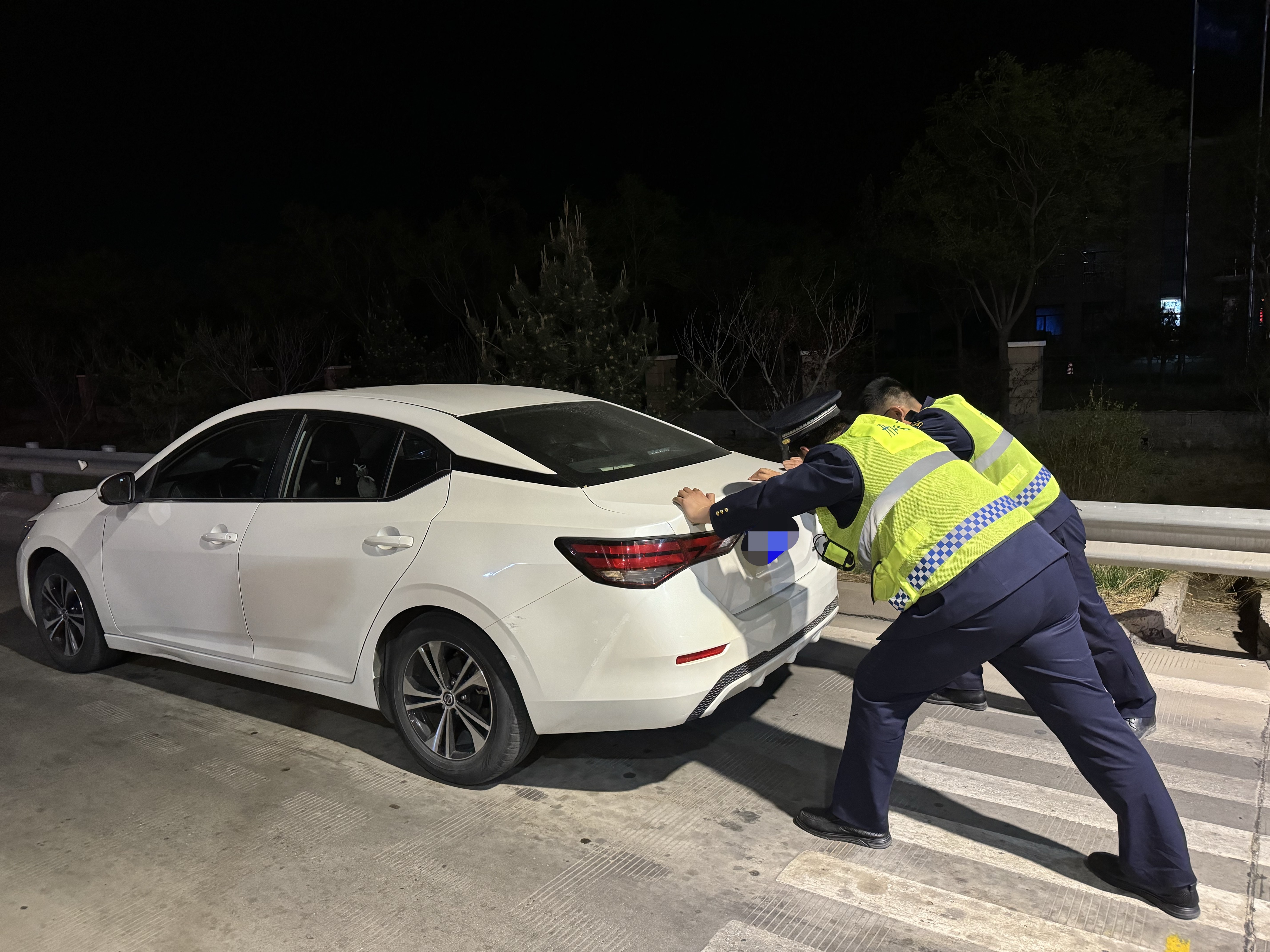 4月17日晚8时许,衡水北收费站上演了一幕温馨感人的场景。一辆小型客车在完成缴费后突发故障无法启动,面对这一突发状况,当班收费员立即上报班长。