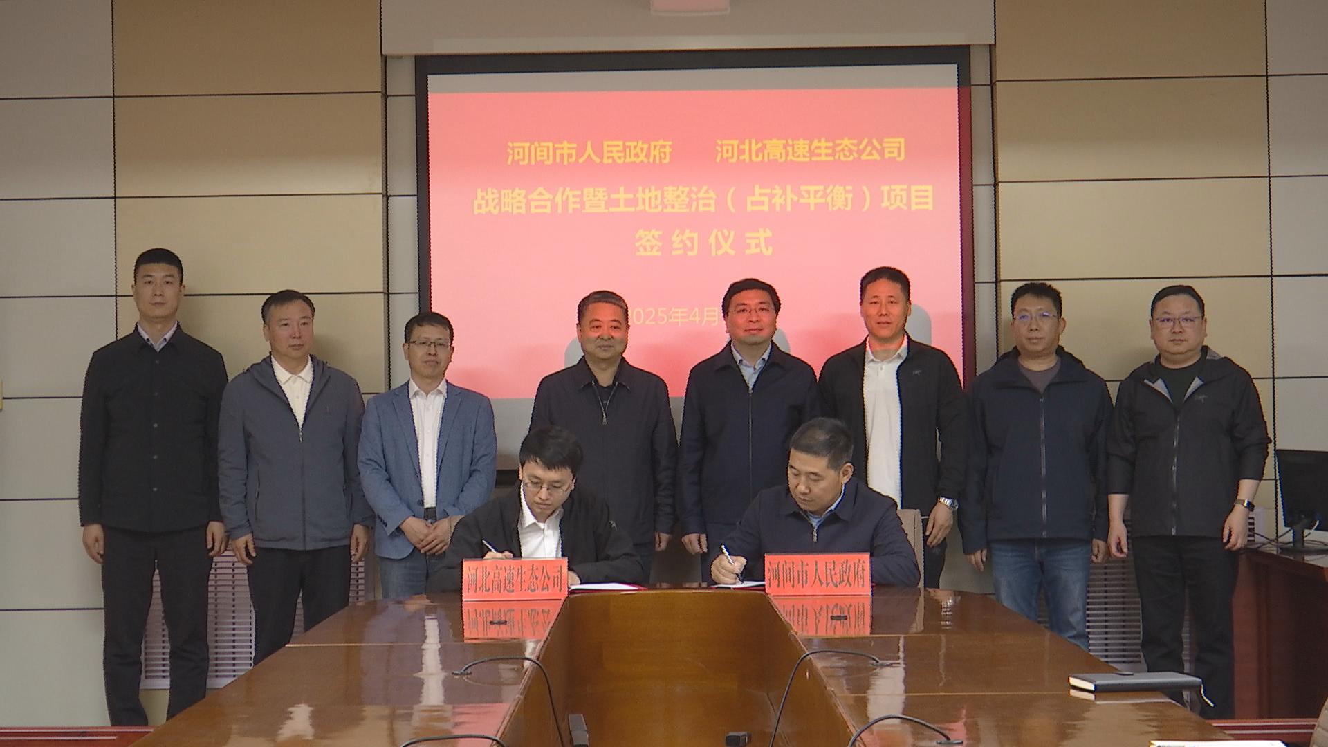 4月18日,河北高速集团生态建设有限公司与河间市人民政府,在河间市政府二楼会议室举行了战略合作暨土地整治(占补平衡)项目合作签约仪式。河间市人民政府常务副市长李兵,生态建设公司党支部委员、副总经理吴波,分别代表双方签署了《战略合作框架协议》《土地整治(占补平衡)合作协议》。河间市政府办、财政局、自然资源和规划局、交通运输局等部门负责人,生态建设公司市场发展部、运营维护部负责人参加活动。