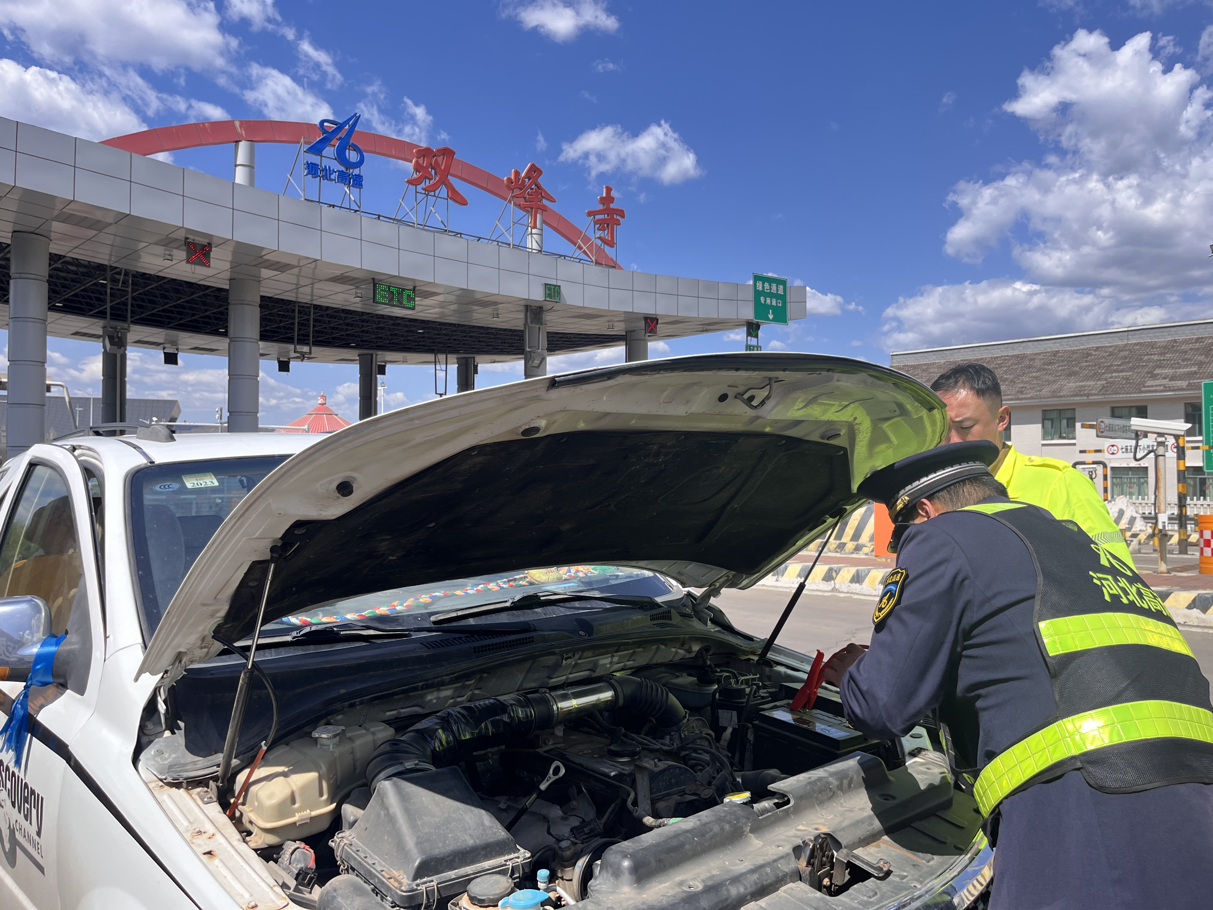 确认故障原因后,收费班长迅速将情况汇报给值班站长。值班站长即刻与平泉保通保畅应急大队的队员一同携带搭电线,驾驶救援车辆赶往现场。两人配合默契,熟练完成搭电操作,短短几分钟便成功启动故障车辆。
