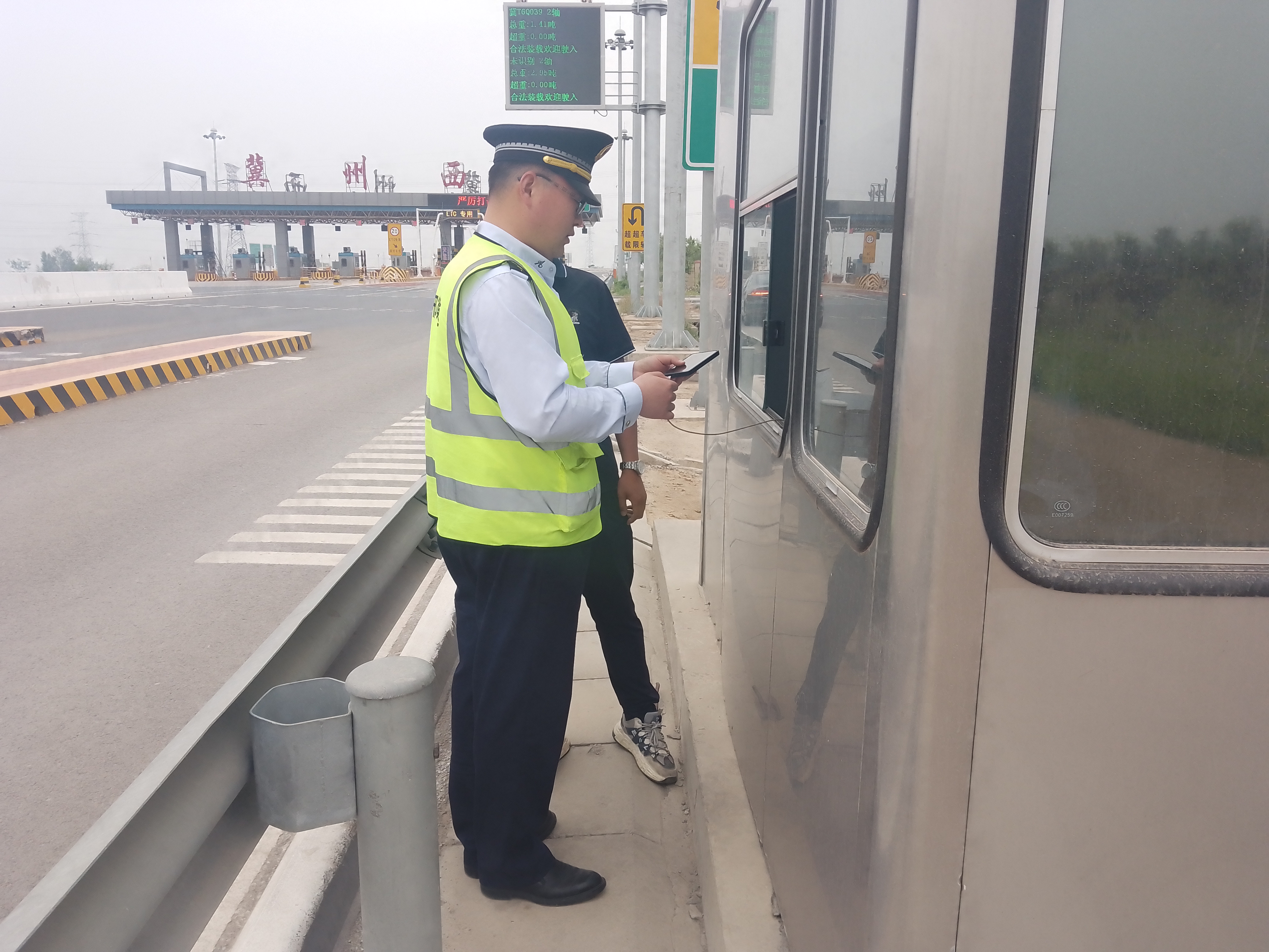 5月7日上午,一辆小型客车驶入冀州西收费站,车辆停靠在计重岗亭窗口,司机焦急地表示自己手机没有电了,收费员随即呼叫疏导员做好后车疏导工作,并联系班长前来处理。