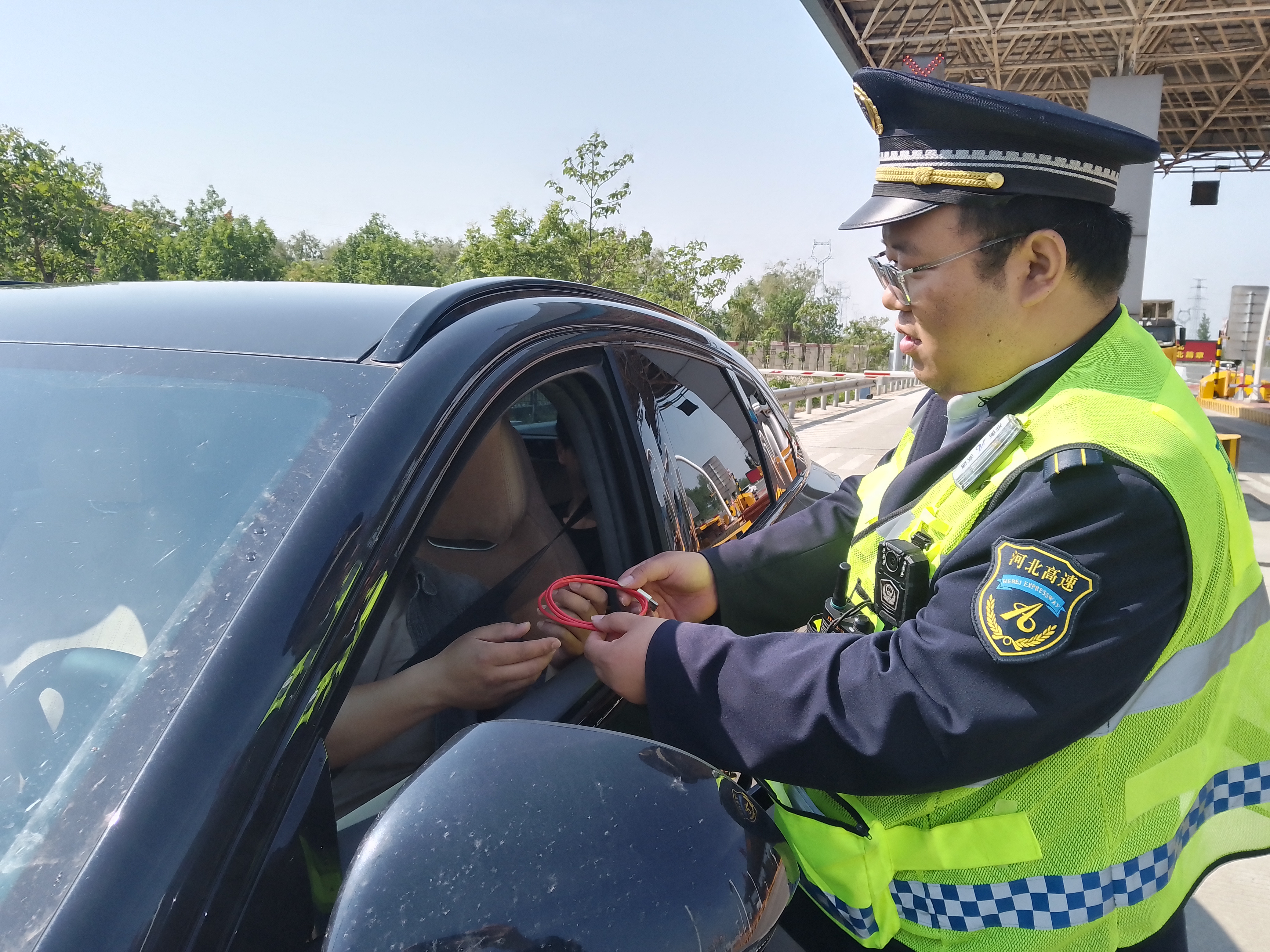 5月10日,一辆小客车行驶到冀州西收费站003车道,一看到收费员,司机便焦急的询问道:“同志,你这儿有没有充电器?我的手机因为一直开启导航,导致手机快没电了,再不充电就关机了。”
