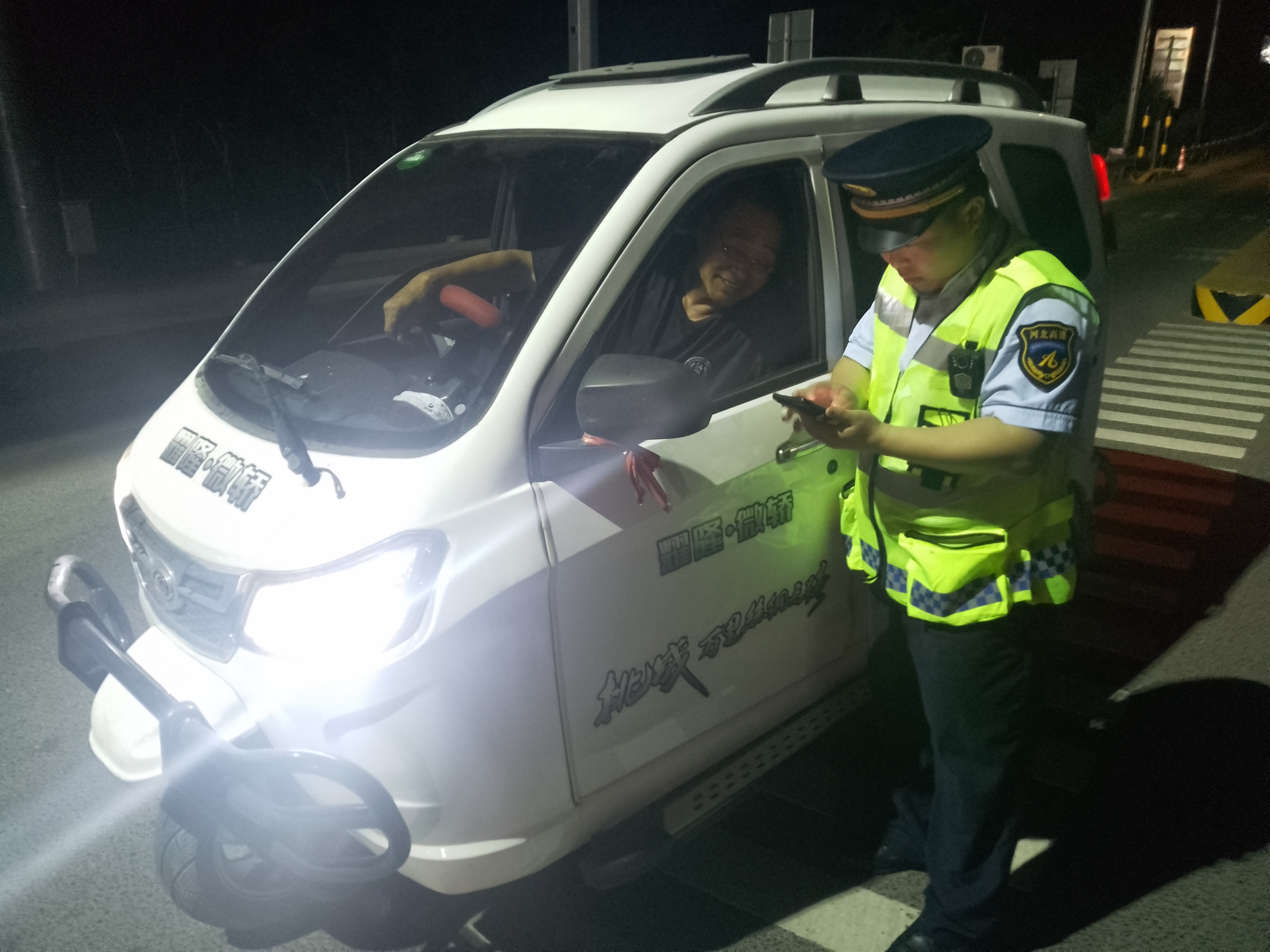 5月20日21时许,一位老人驾驶三轮摩托车沿106国道驶向冀州南收费站入口,治超岗亭值班人员发现后立即上前劝阻:“老人家,请停车!三轮摩托车不能上高速,太危险了!”老人停车后疑惑道:“怎么了?我要领卡上高速。”“根据规定,只有符合规定时速的机动车辆才能通行。为保障安全,三轮摩托车等低速车辆禁止驶入高速公路。”工作人员边解释边引导车辆停靠至安全区域。