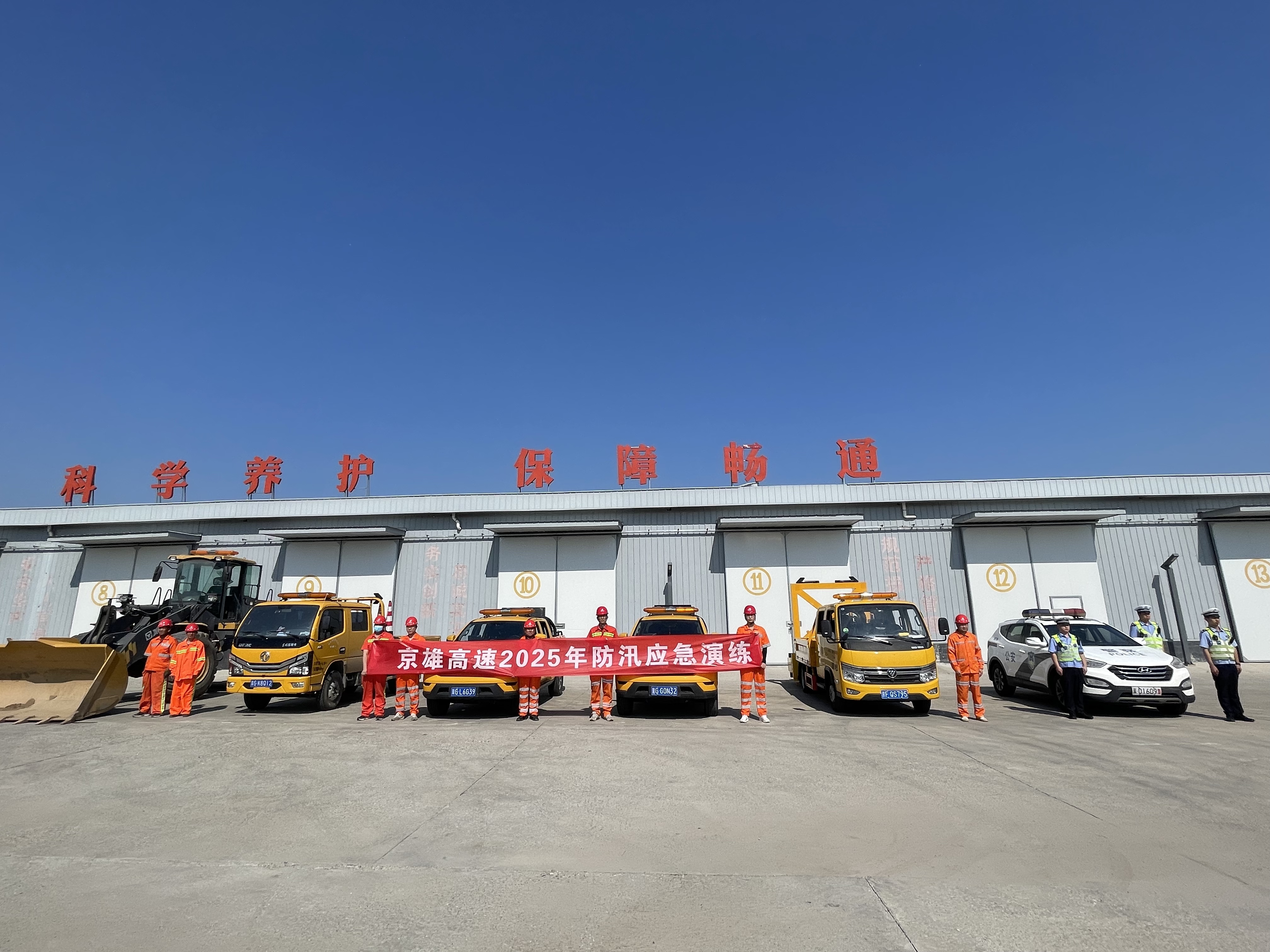 为落实防汛工作部署,全方位检验防汛应急预案的科学性和养护队伍的战斗力,积极推进防汛抢险一体化应急体系建设。5月15日上午,固安养护队联合高速交警、高速路政、京雄分公司、雄安分中心开展京雄高速2025年防汛应急演练。