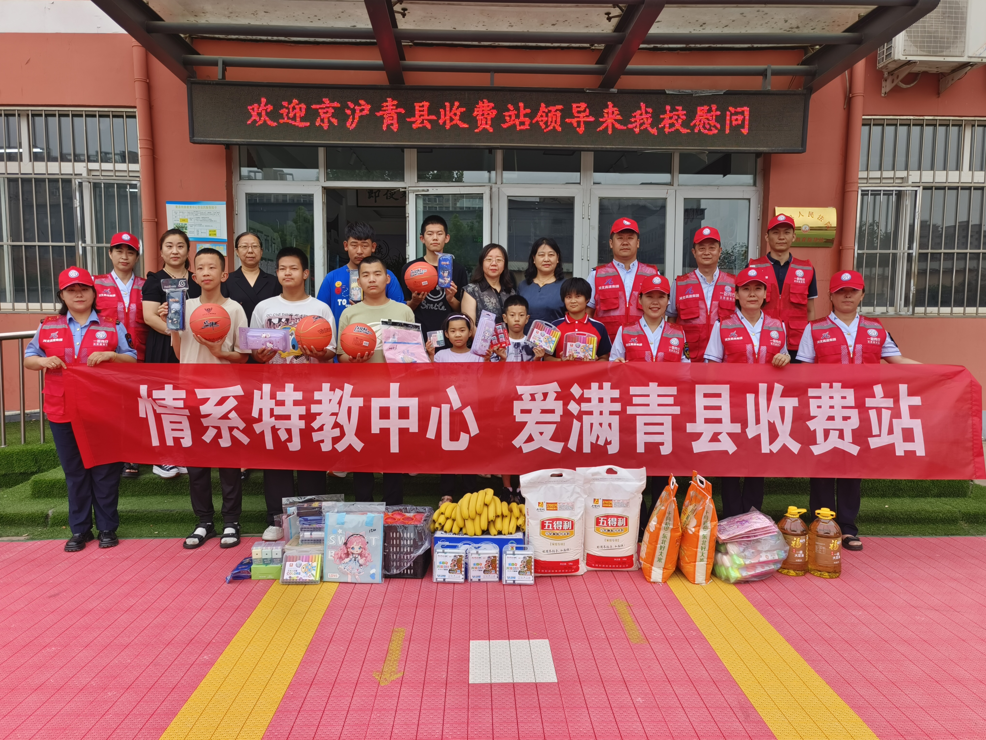 为积极履行社会责任,传递社会温暖,今日,京沪分公司青县收费站“一路同行”志愿服务小分队走进青县特殊教育学校,开展“传递温暖 筑梦通行”志愿服务活动。