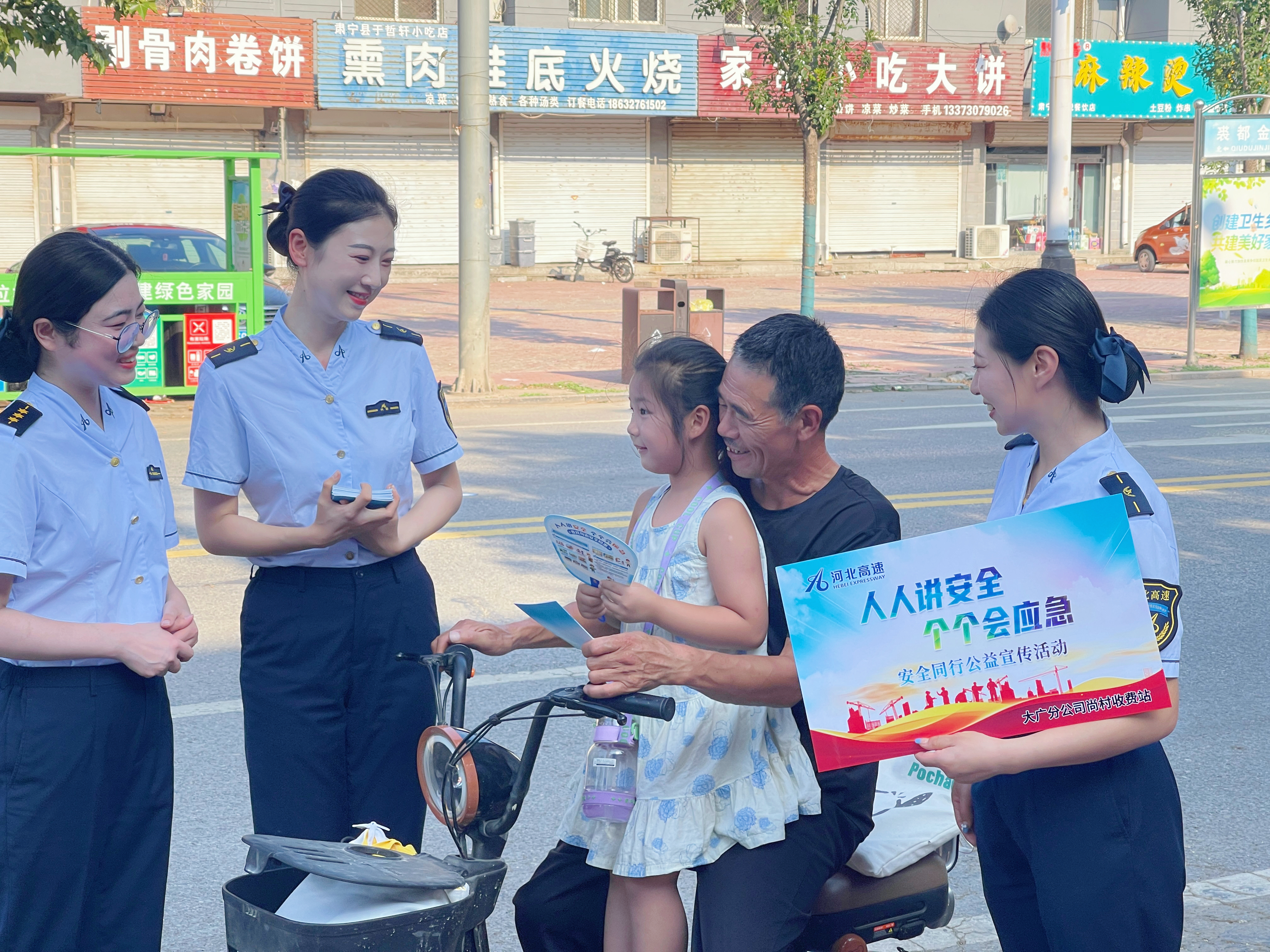 为进一步普及应急安全知识,提升过往司乘与沿线群众安全意识,全力营造“人人讲安全 个个会应急”良好氛围,尚村收费站组织开展“你我携手 让安全一路同行”公益宣传活动。