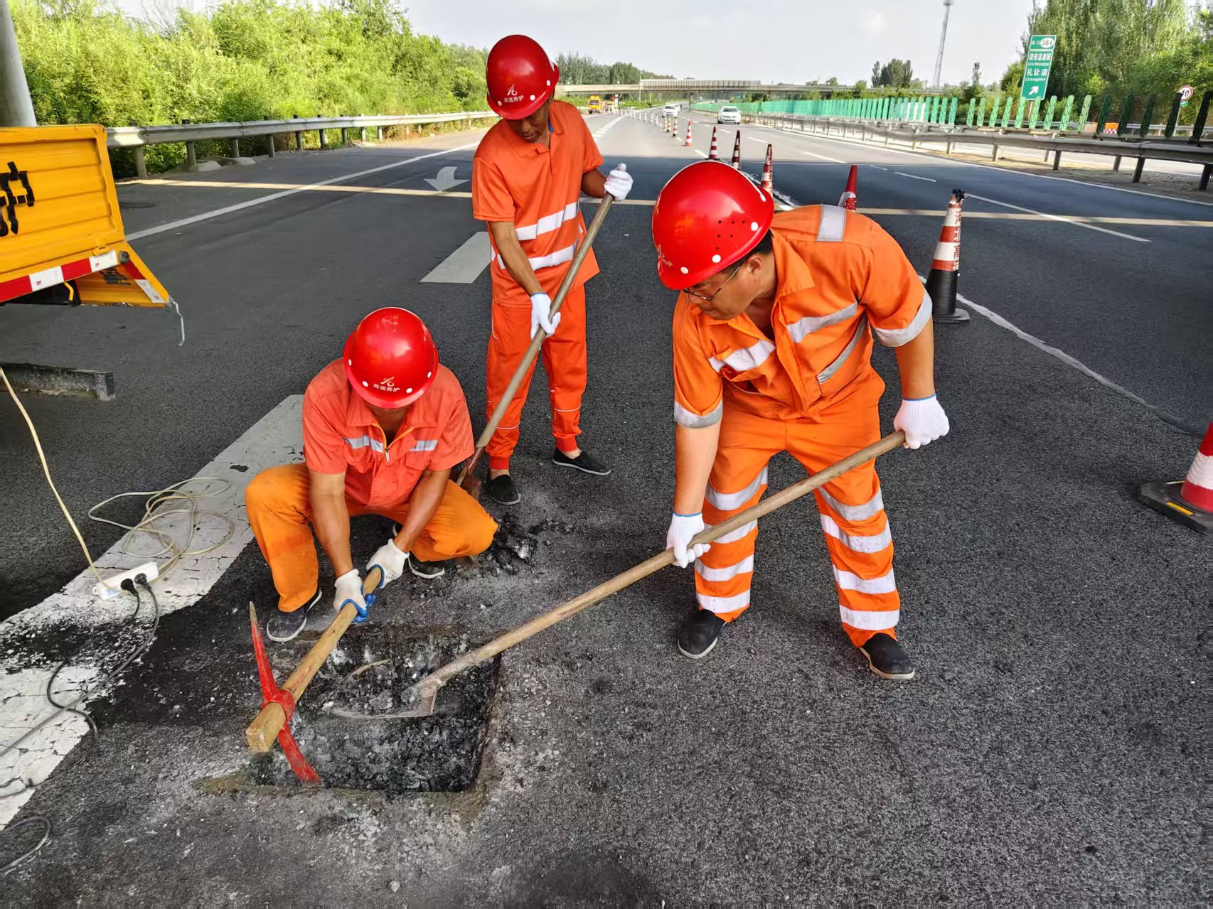 近日,高温天气持续,高速公路沥青路面热浪蒸腾,衡水分中心养护队人员顶着炎炎烈日,抢抓夏季养护“黄金期”,全力处治路面病害,为广大司乘夏季出行保驾护航。