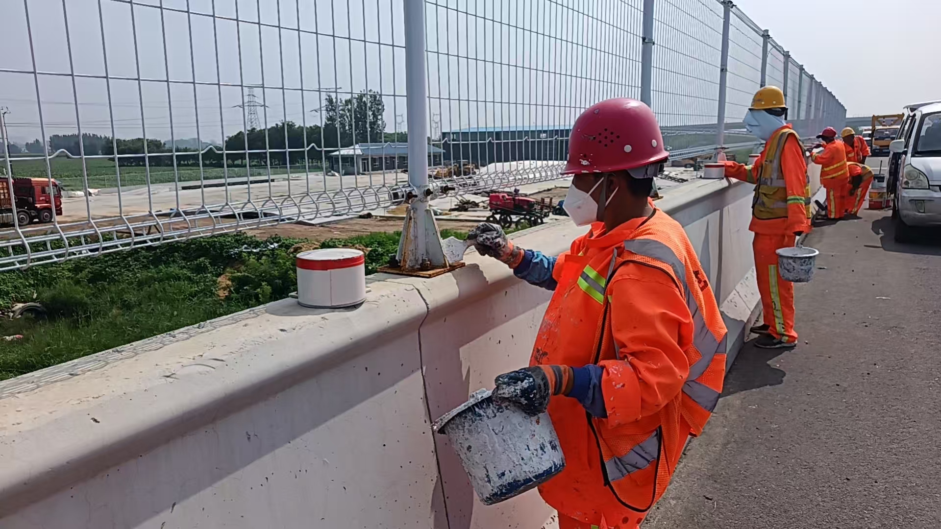 为了守护桥梁的安全、稳定,快速完成桥梁的防腐作业,沧州养护队科学部署,避开正午最热时段,利用早晚凉爽时间抢工;为了保障施工质量,外业人员们分成两组交替施工,并安排专人对施工质量严格把控,要求漆膜厚度必须达标、除锈工作必须彻底。