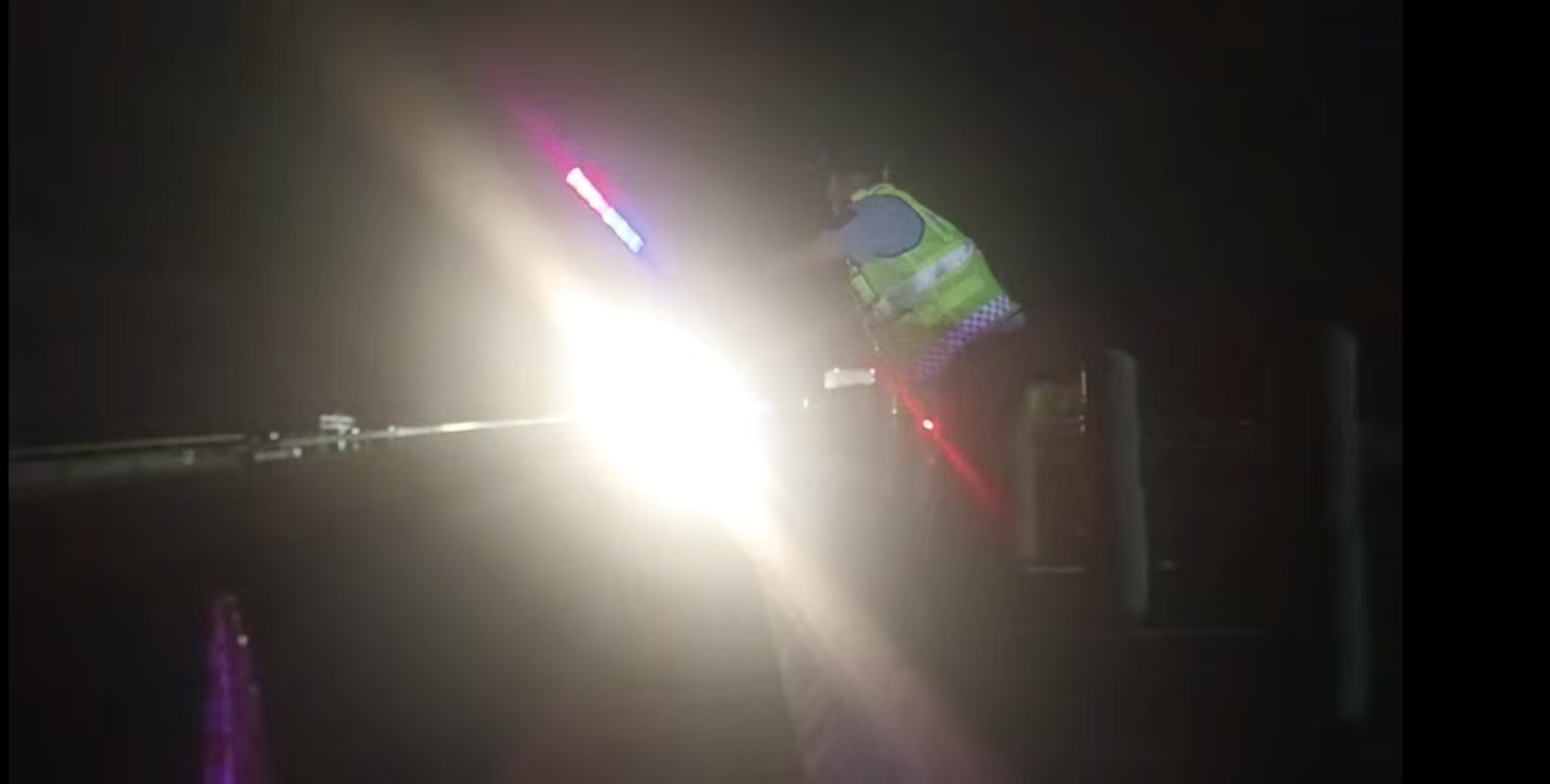 骤至的雷雨仿佛是对队员勇气的考验,黑夜里的每一道闪电,却都在点燃他们心中的热血。仅用13分钟,故障车所在的快车道上便筑起了一道守护线:保畅车在故障车后方保持安全距离,车灯明亮如炬;安全锥整齐排列,将故障点与过往车流彻底隔离开来。队员赵红伟、吴昊迅速进入安全作业区,登上中央隔离护栏,奋力挥舞着警示棒,为后方疾驰的车辆指引方向、提示避让。让每一辆在路上的车都能安全通行,这是他们心中最坚定的信念,支撑着他们在雨中静静等候救援车辆的到来。