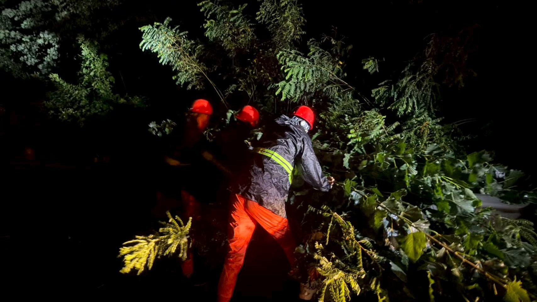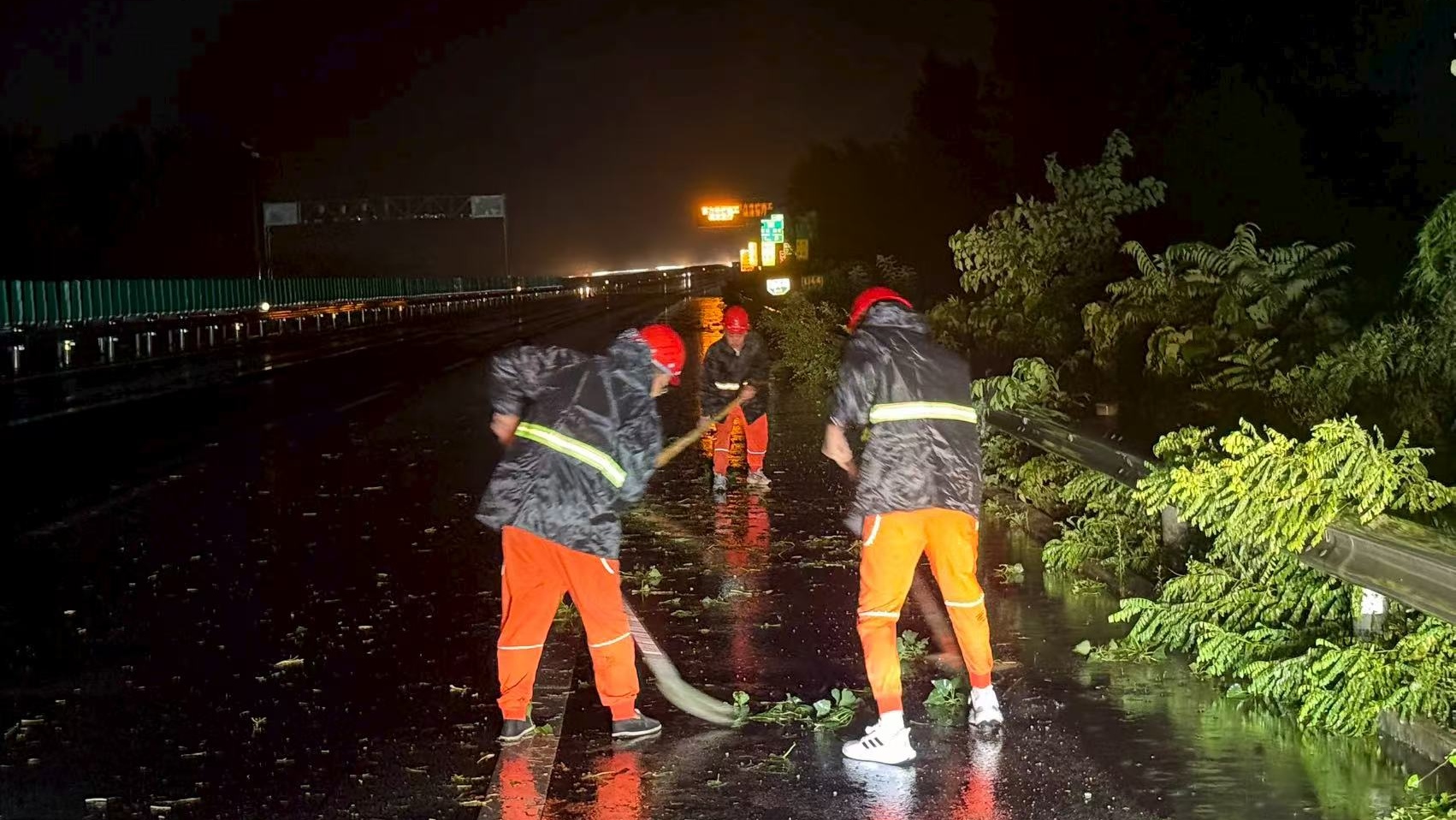 养护分公司衡水分中心:冒雨清理倒伏树木 养护人员紧急排险