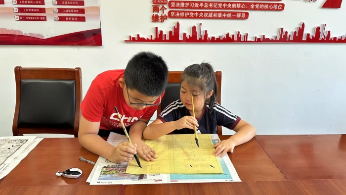"亲子共书"环节,家长与孩子共同执笔书写毛笔字。家长们耐心指导握笔姿势与运笔技巧,从基本笔画到完整汉字,孩子们在陪伴中感受书法魅力,领略传统文化精髓。笔墨流转间,既提升孩子书写能力,更深化亲子默契。