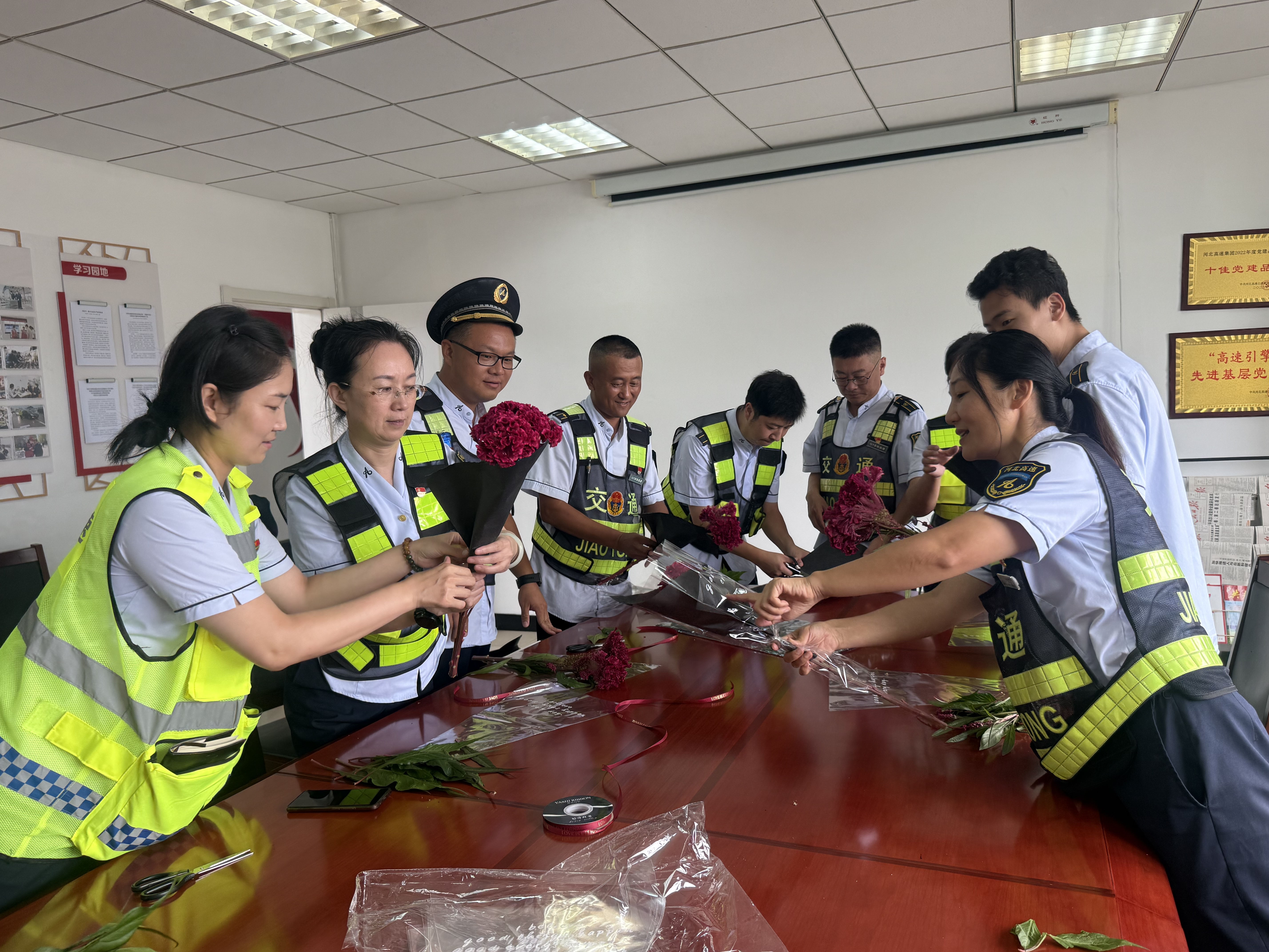 活动当天,党员们一大早便忙碌起来。花棚采摘、扎花包装、书写贺卡,伴随着“七夕快乐,旅途顺利”的贴心问候。收到鲜花的司乘们纷纷露出笑容,有的拿出手机拍照留念,有的连声道谢:“这是我七夕节收到的第一份惊喜,太贴心了!”