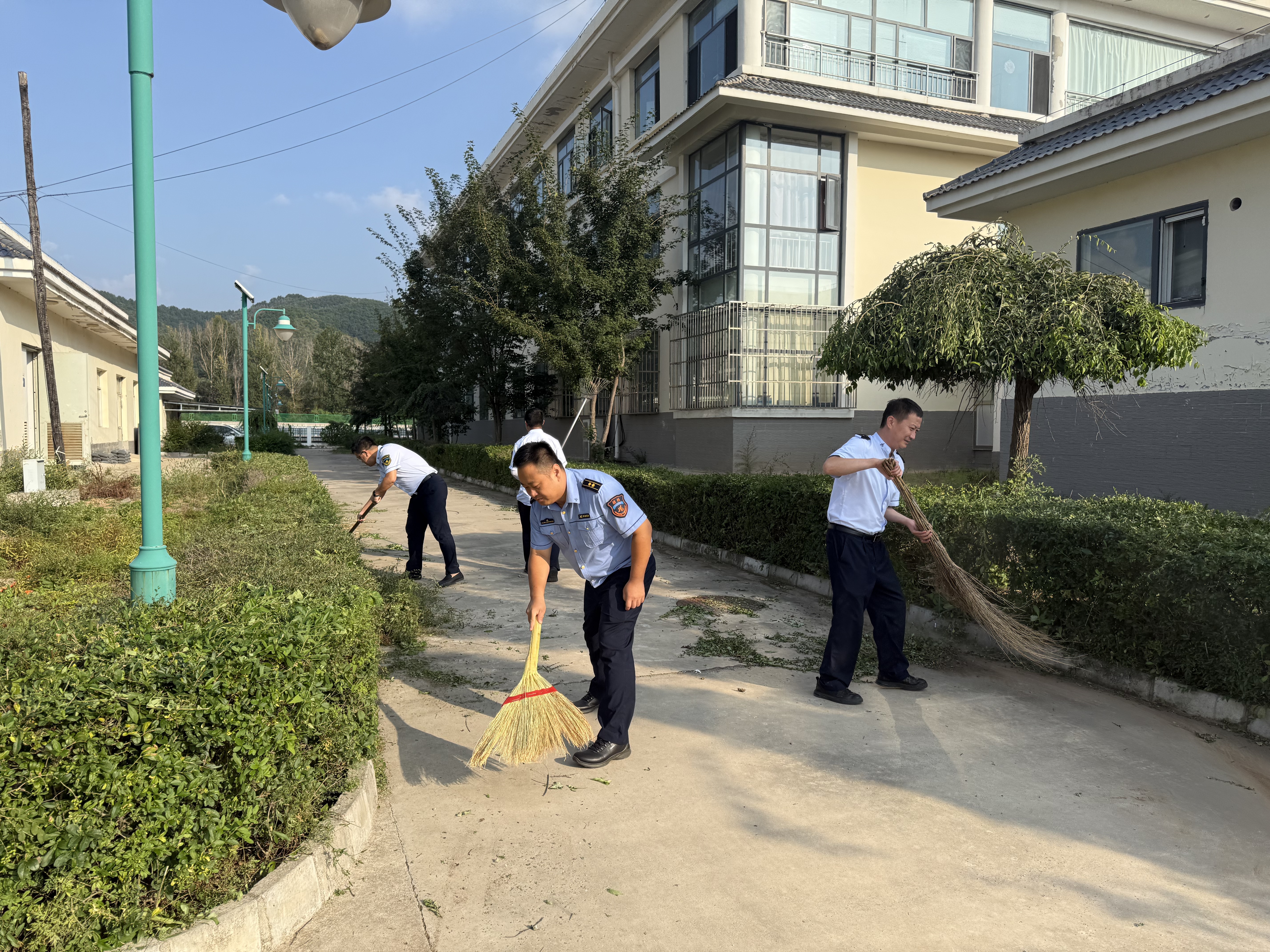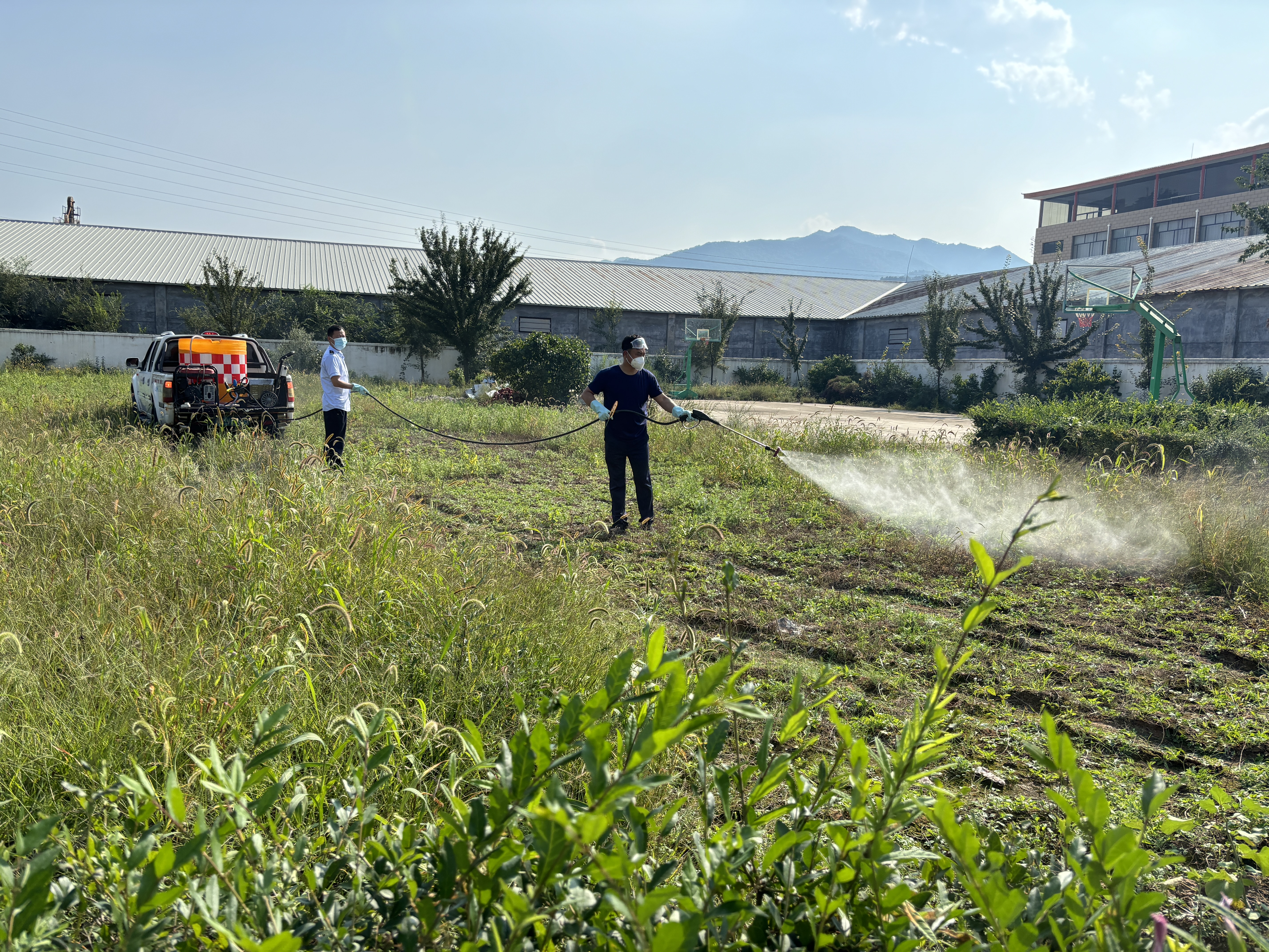 职工们利用业余时间,携带镰刀、打药机等工具,对宿办区院内、绿化带及旗杆周边等区域的杂草进行全面清理。针对人工拔除难度大、易复发的杂草,职工们严格按照药剂使用规范,调配合适浓度的药液进行喷洒,有效抑制杂草生长。作业过程中,大家相互配合、有序推进,同时注重做好安全防护,避免药剂对周边环境造成影响。