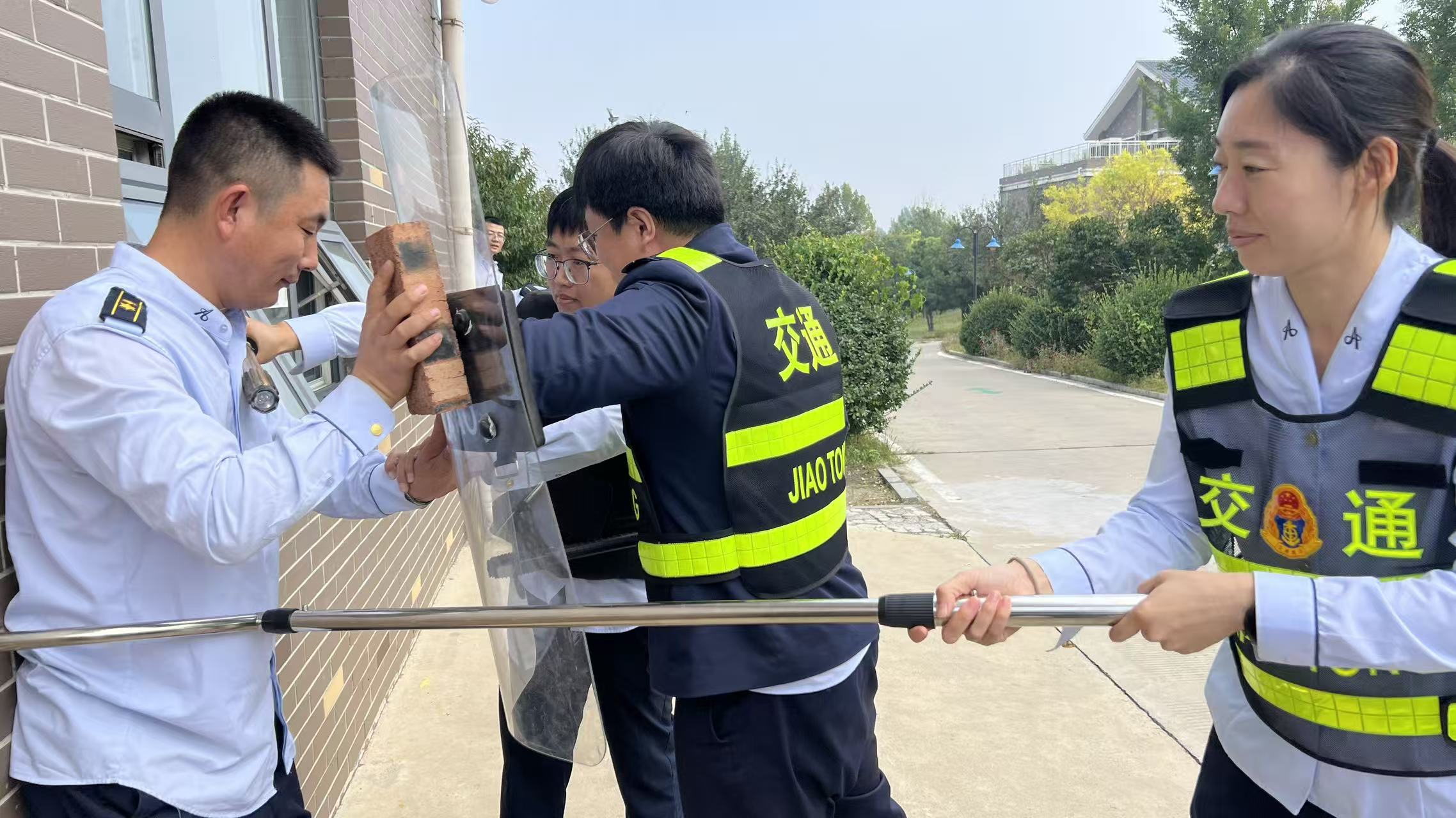 针对收费广场车辆火灾场景,演练聚焦“快速控火、安全疏散、高效联动”三大目标。当班收费人员发现“火情”后,第一时间进行上报、设置安全警戒区域,引导周边车辆有序撤离;应急处置组熟练使用灭火器对准火源根部扑灭火势,整个过程反应迅速、配合默契,有效检验了收费站在突发火情下的应急指挥、协同作战与现场管控能力。在人员触电应急处置环节,参演人员迅速模拟切断电源、判断伤者状态、实施心肺复苏急救,并及时联动医疗救援,完整呈现了从险情发生到初步处置的全链条响应。在防盗抢演练环节,模拟“歹徒”试图冲击站区的突发场景,应急处置小组携带防暴装备快速抵达现场,采用“围控震慑、战术周旋”方式控制现场局势,最终成功“制服”模拟歹徒,整个过程紧张有序,充分验证了收费站防盗抢现场处置方案的可行性与人员应急处突的实战能力。