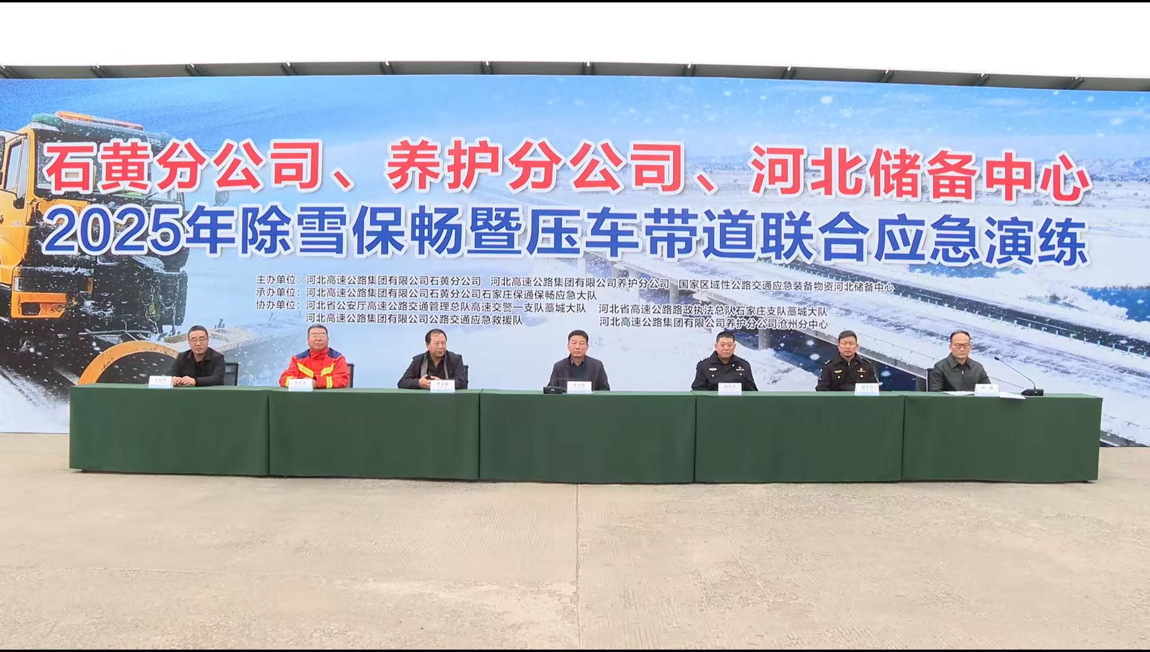 为更好检验“一路多方、协调联动”冬季除雪保畅工作机制,完成今冬明春除雪保畅工作。2025年11月5日上午,养护分公司联合石黄分公司,于藁城养护队驻地,举办“2025年除雪保畅暨压车带道联合应急演练”,河北高速集团有限公司石黄分公司党委书记翟忠伟,国家区域性公路交通应急装备物资河北储备中心主任梁文斌,开云集团公路交通应急救援队队长朱宏文,养护分公司副总经理左志国,石黄分公司副总经理孙越,河北省公安厅高速公路交通管理总队高速交警一支队藁城大队队长赵双虎,河北省高速公路路政执法总队石家庄支队藁城大队队长赵宏伟,出席此次演练。