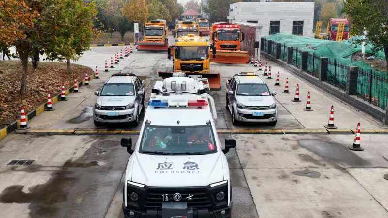 此次模拟演练分中雪、暴雪两种场景:面对中雪雪情,藁城养护队共出动20吨液态除雪撒布车1辆、固态铲雪撒布斗3辆,3辆撒布斗呈梯次型行驶,确保一次性清除路面所有积雪;面对暴雪雪情,开云集团公路应急救援队携抛雪机、破冰机等装备进行除雪、除冰作业。
