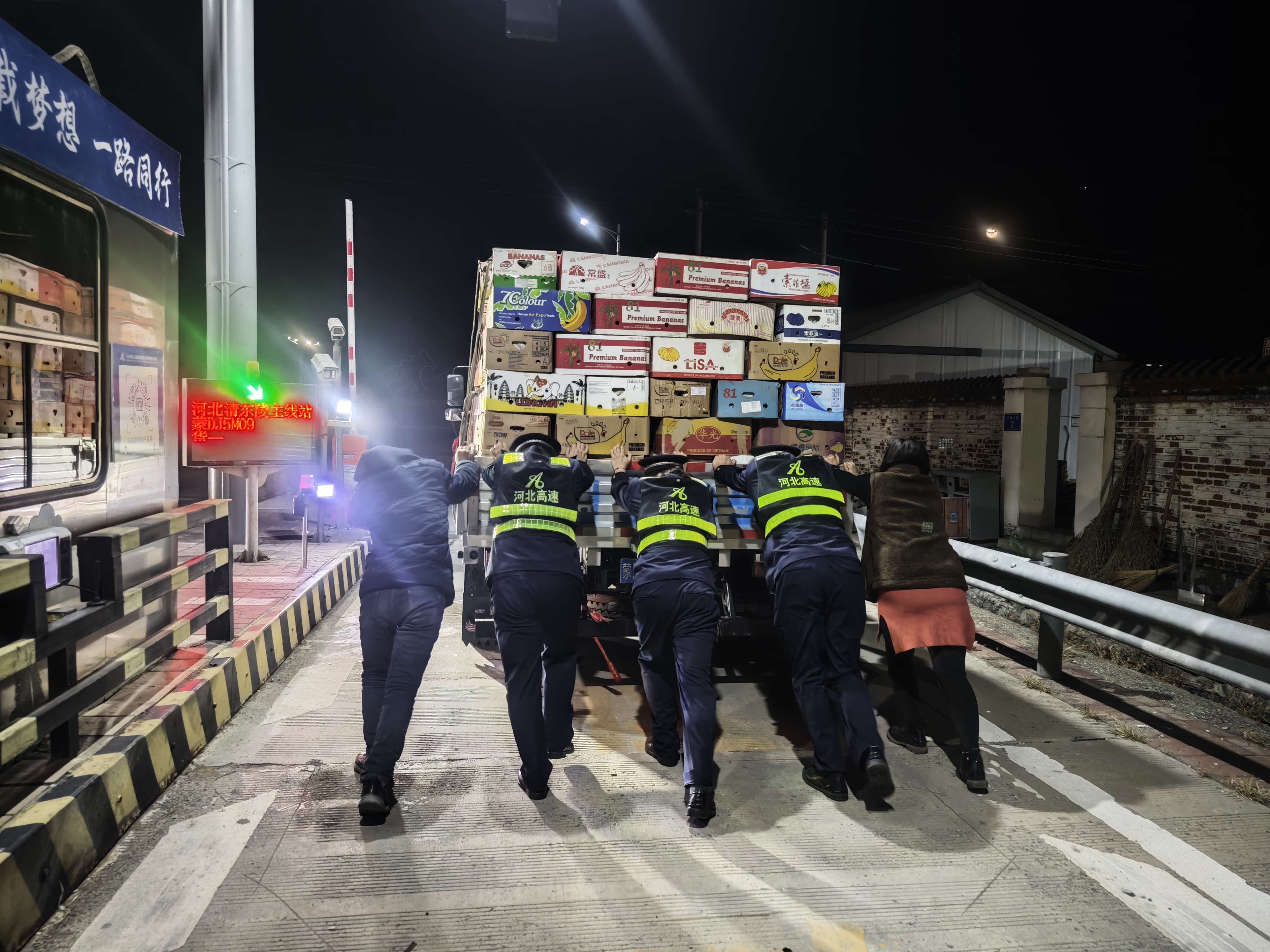 经询问得知,该司机驾驶的货车突发故障,无法继续行驶。了解情况后,当班班长第一时间安抚司机情绪,迅速调配在岗人员,携带应急工具跟随司机赶往故障地点。抵达现场后,众人先在货车后方设置警示标识,随后合力推车,经过半个多小时的努力,终于将故障货车推至安全区域。站内人员随即为司机递上热腾腾的开水驱寒,同时积极联系多家汽车修理厂,经反复沟通协调,成功对接维修人员。在大家的齐心协助下,故障车辆顺利修好。司机临行前再三致谢:“要是没有你们帮忙,我今晚真不知道该怎么办,太感谢河北高速集团的同志们了!”