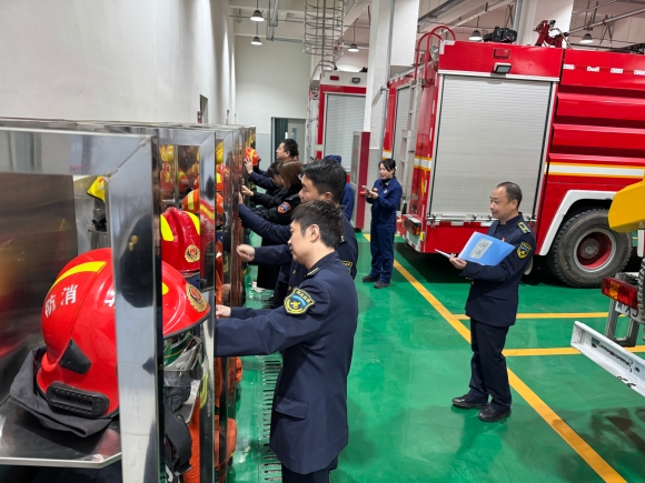 在消防车库,职工们在讲解员引导下详细了解各类消防车辆的救援功能,从水罐消防车的灭火覆盖能力到抢险救援车的破拆装备用途,大家对消防救援的专业装备有了直观认识。讲解员现场演示“1分钟快速穿戴”消防装备的技巧,职工代表积极参与,在指导下完成了消防靴、防护服等基础穿戴,切身感受到消防员出警时的紧张节奏。