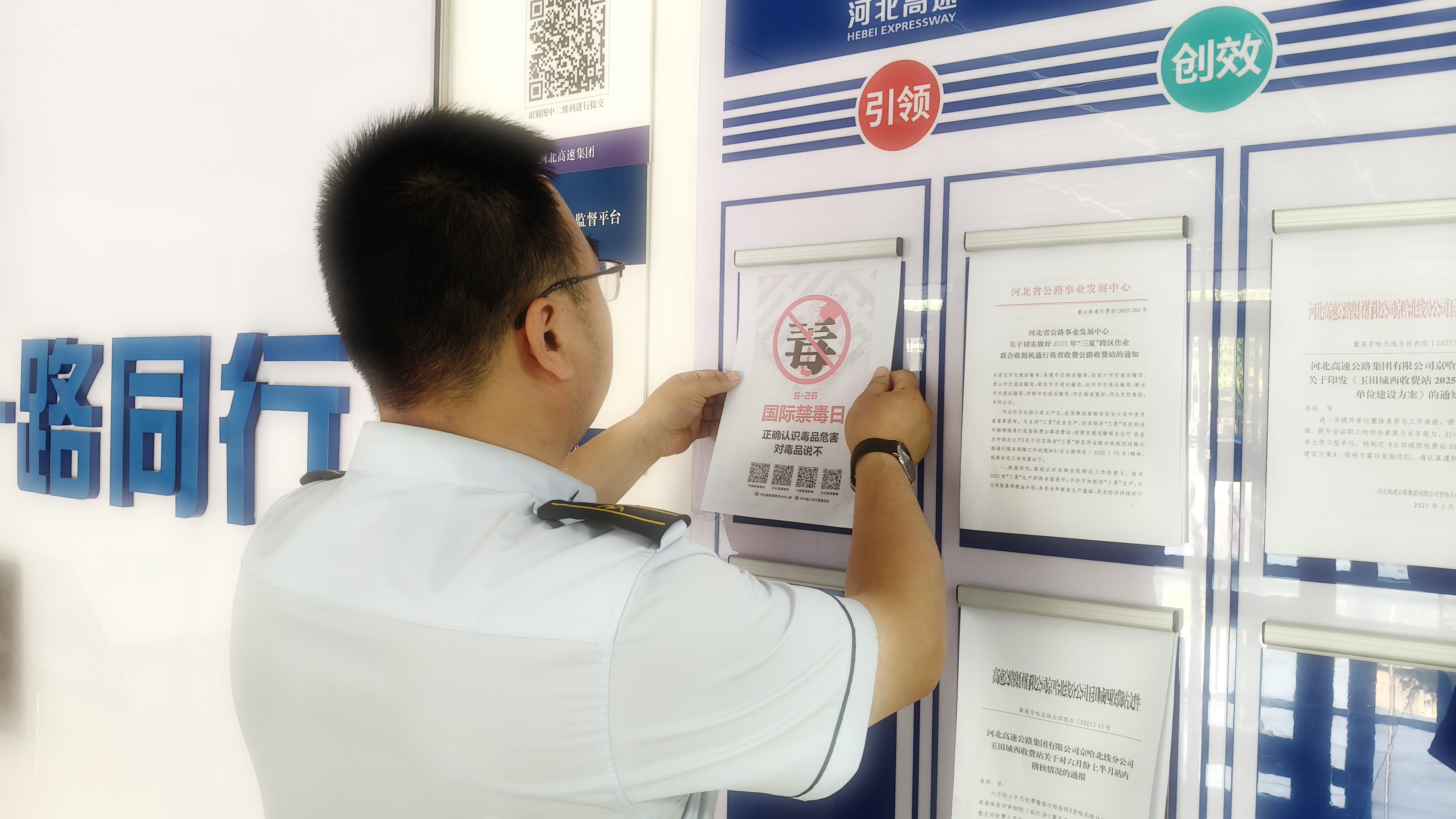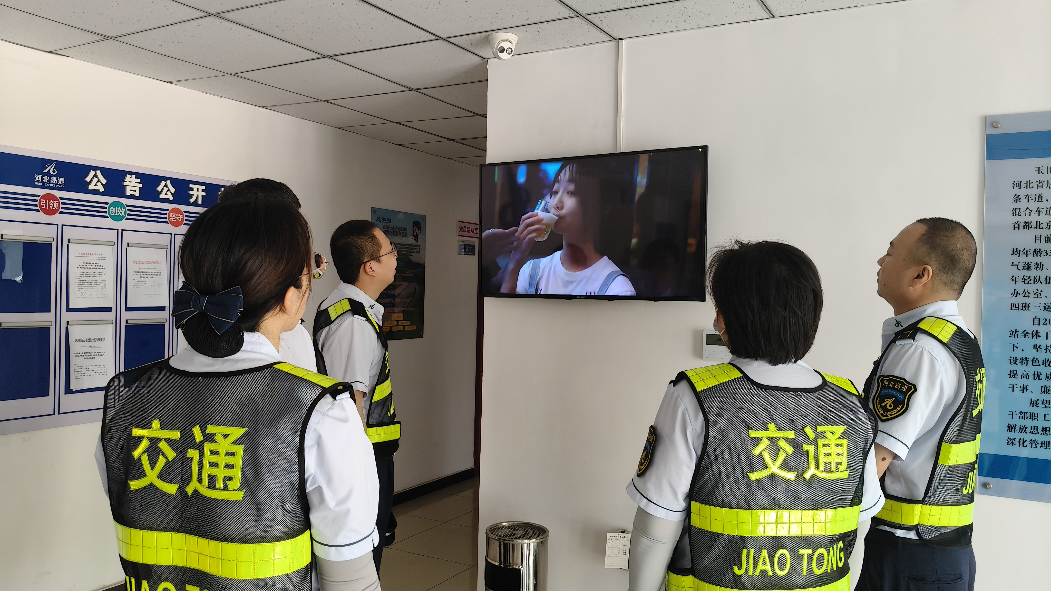 活动期间,玉田城西收费站充分利用站内宣传栏、收费岗亭等显著位置,张贴了内容丰富、警示性强的禁毒宣传海报,让职工和过往司乘在驻足间了解禁毒知识,时刻敲响禁毒警钟。通过在一楼大厅电视上循环播放《幻视黑洞》《百变零食的“毒陷阱”》等禁毒教育警示片,让大家更直观地认识到毒品的可怕,推动“健康人生,绿色无毒”理念深入人心。