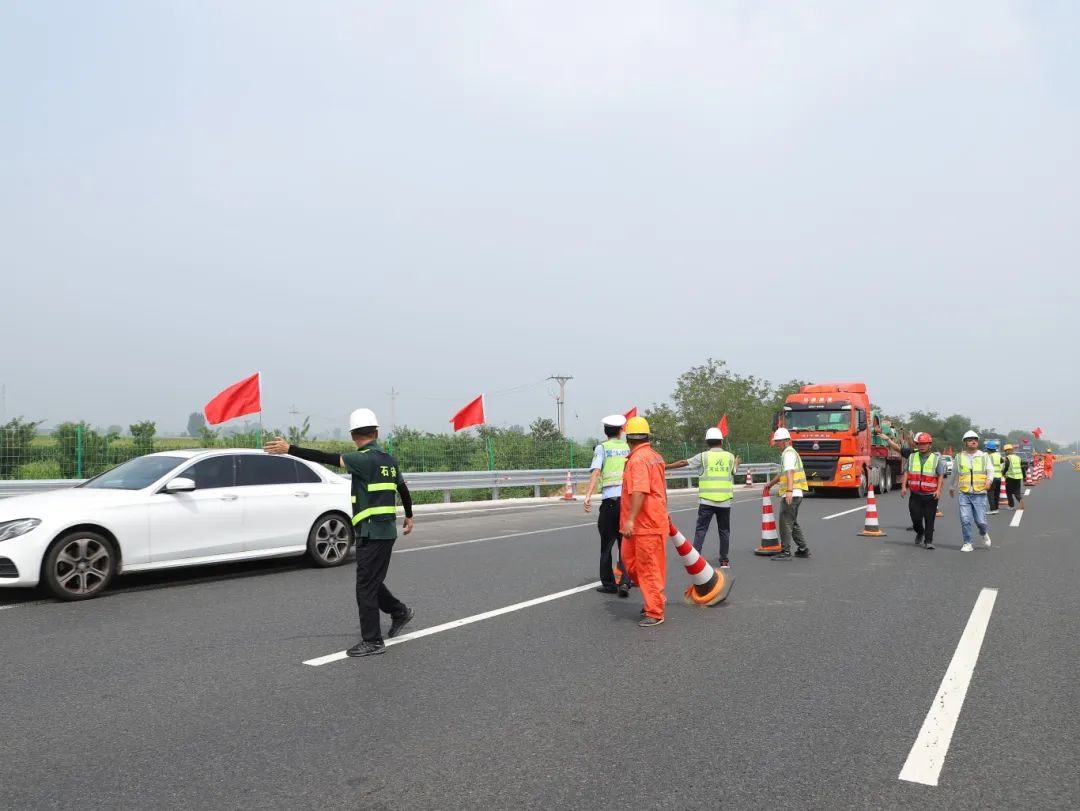 导改实施当日,石安分公司、高速交警、施工人员三方紧密协同配合,有条不紊地架起蜿蜒的隔离带,将施工区域与通行区域清晰分隔,车辆安全有序通行。导改期间采取专人24小时值守和不间断巡逻,全力确保交通设施摆放始终规范,声光电设备正常使用。同时,布设应急救援车和清障车各一部,加大对过往车辆的疏导力度,及时应对各类突发情况,保障车辆安全快速通行,力求将施工对交通的影响降到最低。