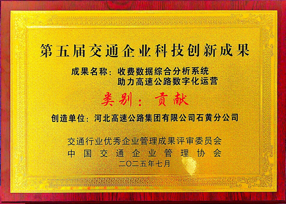 近日,石黄分公司自主研发的“收费数据综合分析系统”再获殊荣,被中国交通企业管理协会授予“第五届交通企业科技创新贡献成果”。此前,该系统已取得两项著作权,并荣获河北省第一届职工技术创新成果三等奖。不仅彰显企业数字化转型硬核实力,更凝聚了杨嘉楠创新工作室与孙幼华创新工作室协同攻关的智慧力量。
