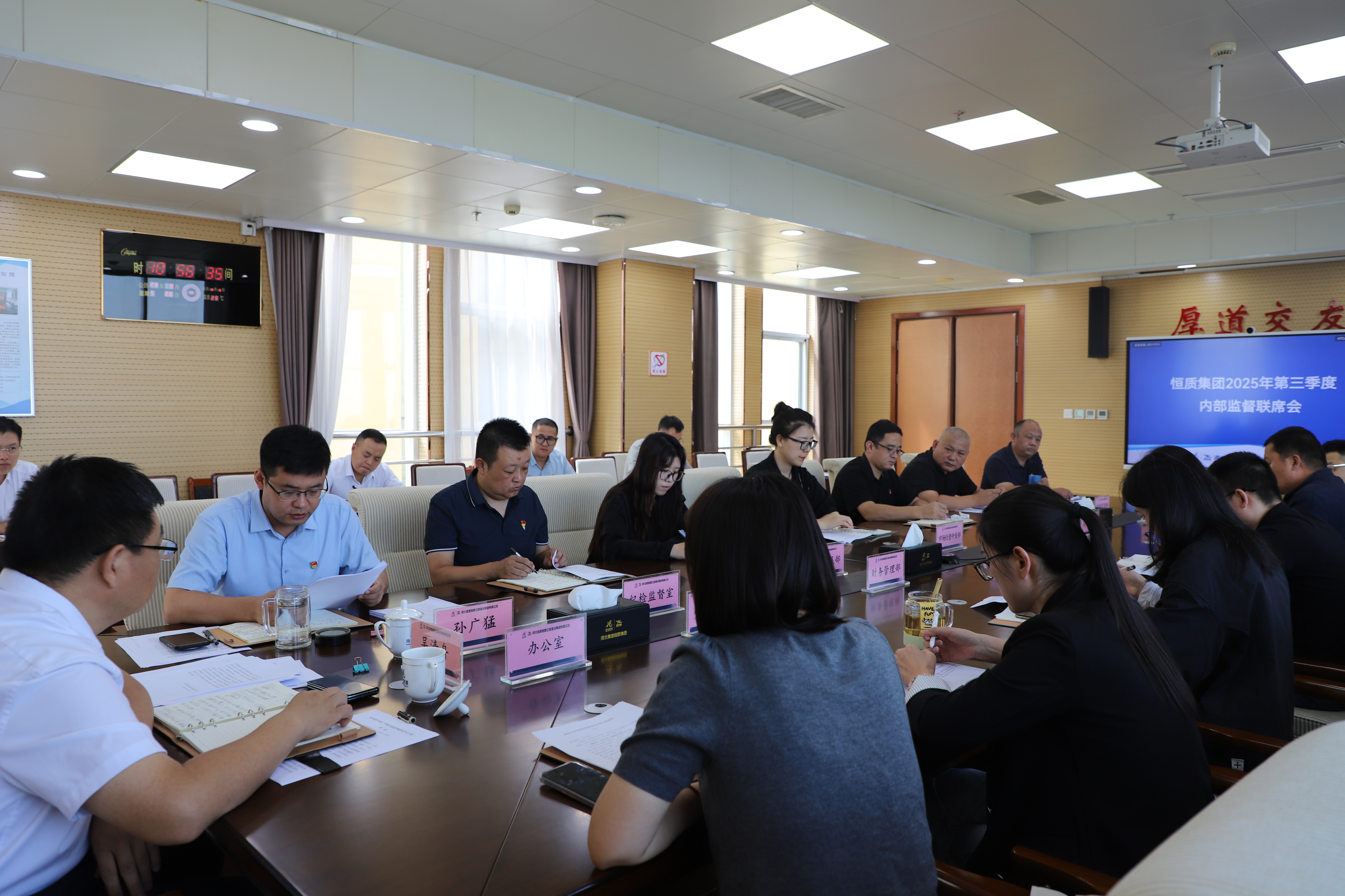 为强化重点工程合规管理与风险防控,扎实推进作风纪律建设,9月26日,恒质集团召开2025年第三季度内部监督联席会。总部各部室主要负责人、全体纪检干部参会,集团党委书记、董事长吴清舟出席会议并作讲话,会议由党委委员、纪委书记孙广猛主持。