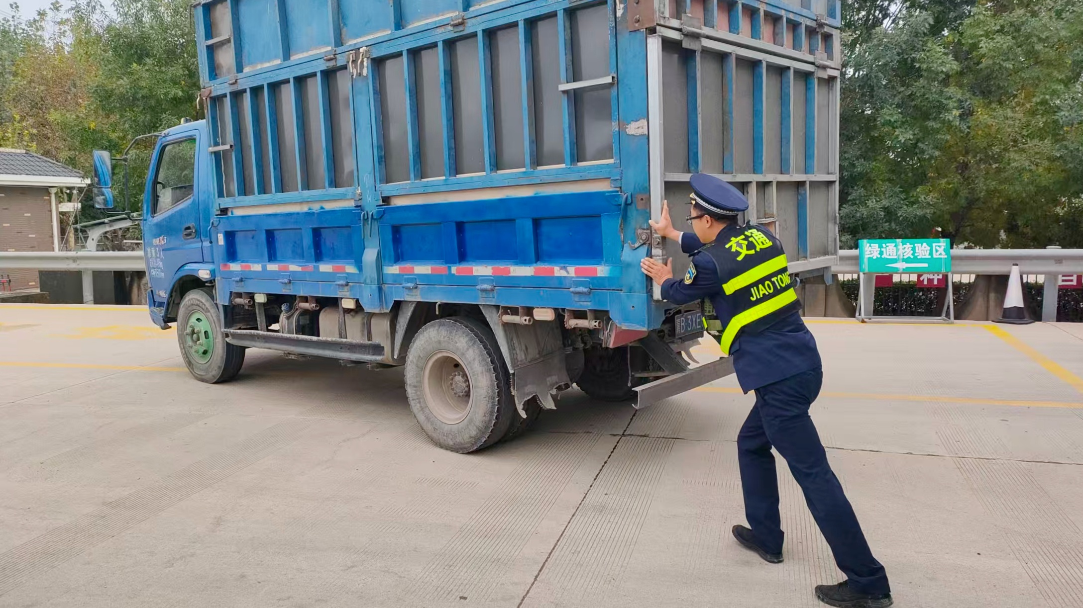 近日,一辆小型货车在平安城收费站完成缴费后,却无法正常启动,当班班长发现这一情况后,第一时间快步赶到现场了解情况。